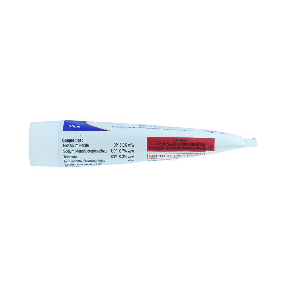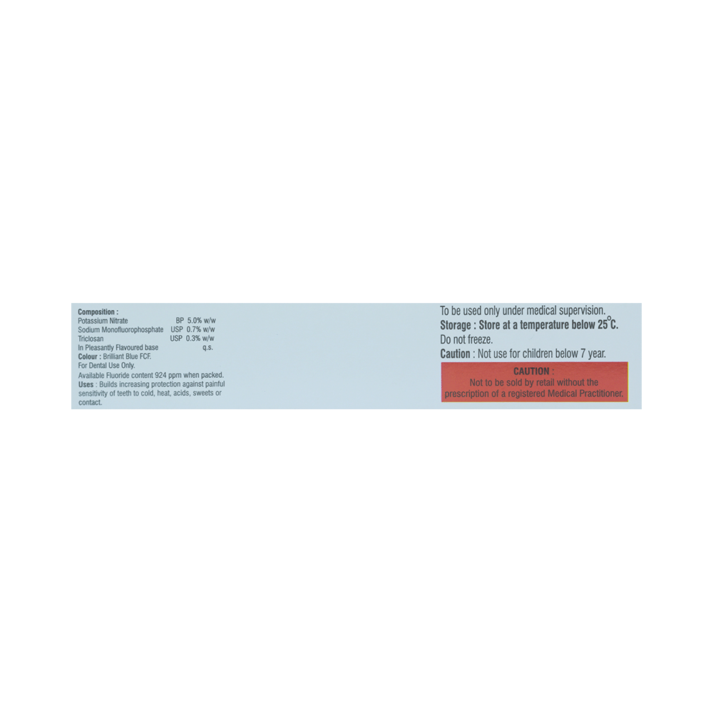 Salt Composition: Potassium Nitrate (5% w/w) + Sodium Monofluorophosphate (0.7% w/w) + Triclosan (0.3% w/w)