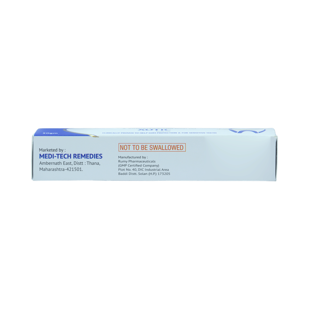 Xotic Oral Gel is a combination of three medicines is used to treat dental cavities. It reduces the pain and sensitivity that occur while having cold and hot food items. It also makes the teeth stronger and also kills the bacteria that cause cavities. Xotic Oral Gel is strictly advised for external use only. Use it in the dose and duration advised by your doctor. Apply it only to the affected teeth. It should not be used in excess amount and avoid swallowing it. In case of accidental contact with your eye, rinse it off with plenty of water.This medicine is generally safe and does not usually cause any common side effects. However, if you experience any allergic reactions such as itching, swelling, and rashes, you should consult a doctor immediately.