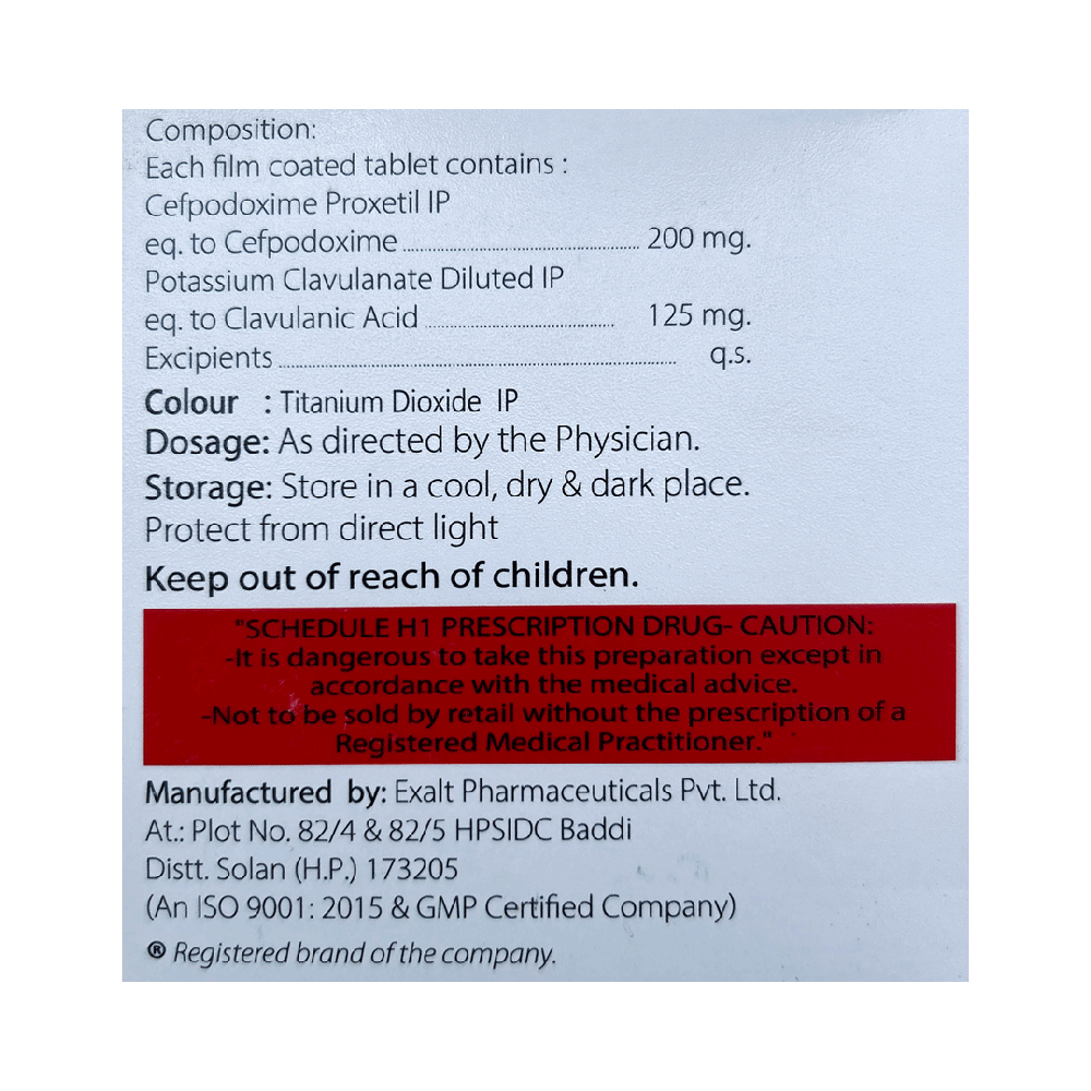 Salt Composition: Cefpodoxime Proxetil (200mg) + Clavulanic Acid (125mg)