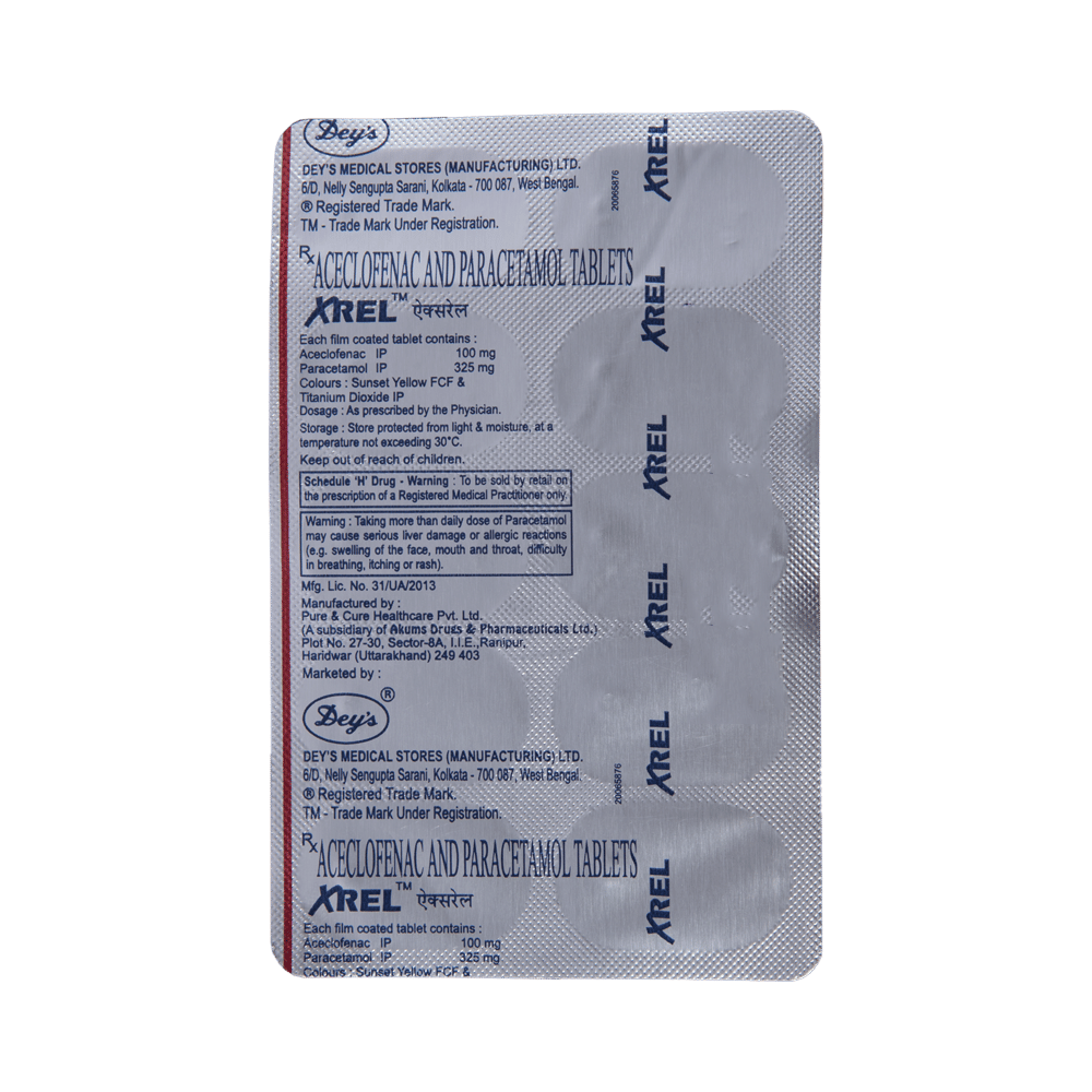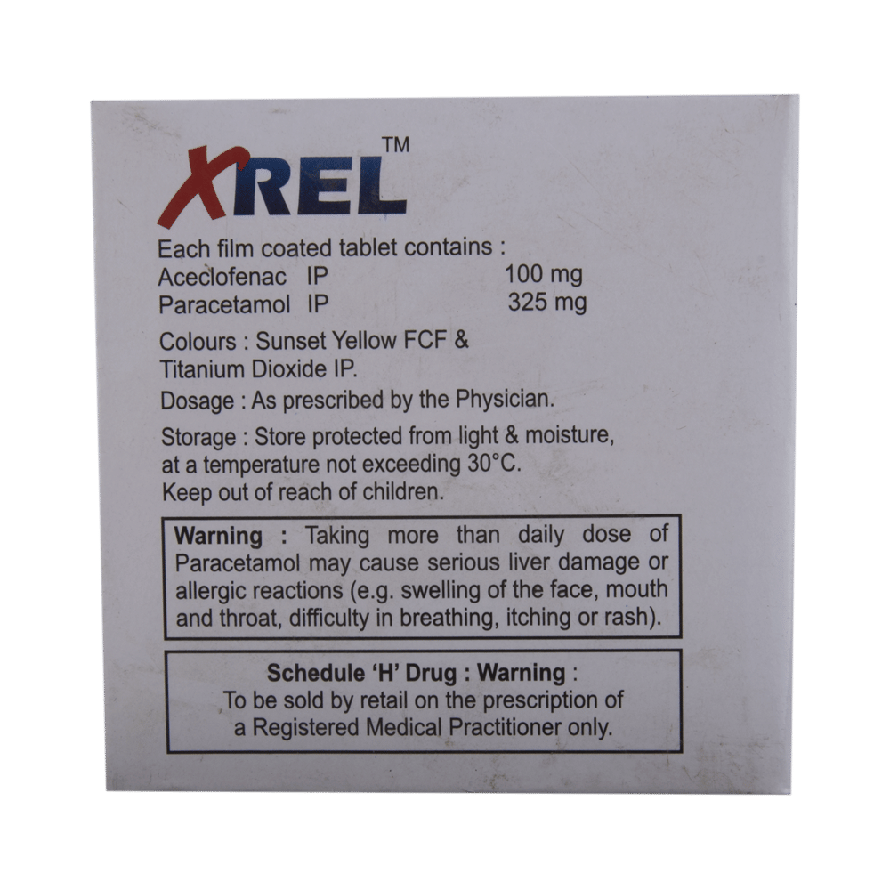 XREL Tablet is a combination of two medicines: Aceclofenac and Paracetamol. These medicines work by blocking the action of chemical messengers responsible for pain, fever and inflammation (redness and swelling).