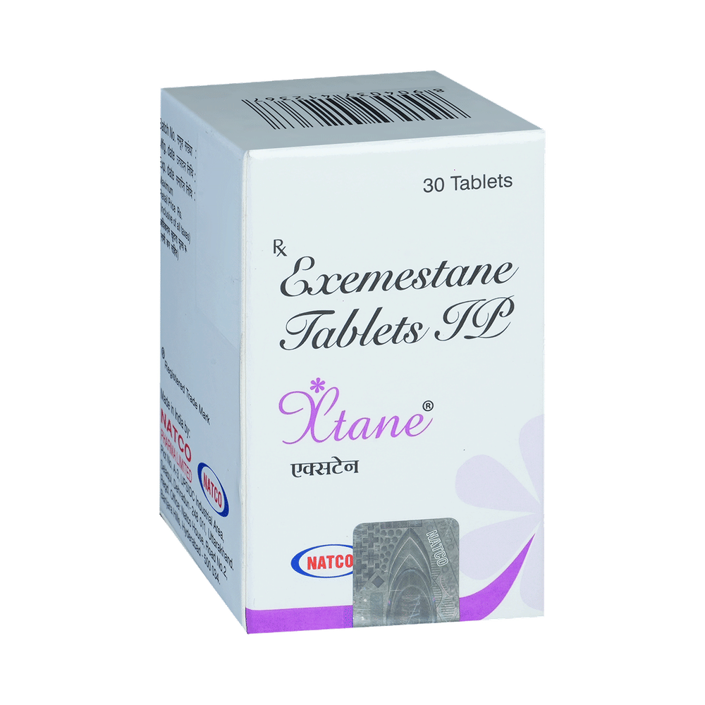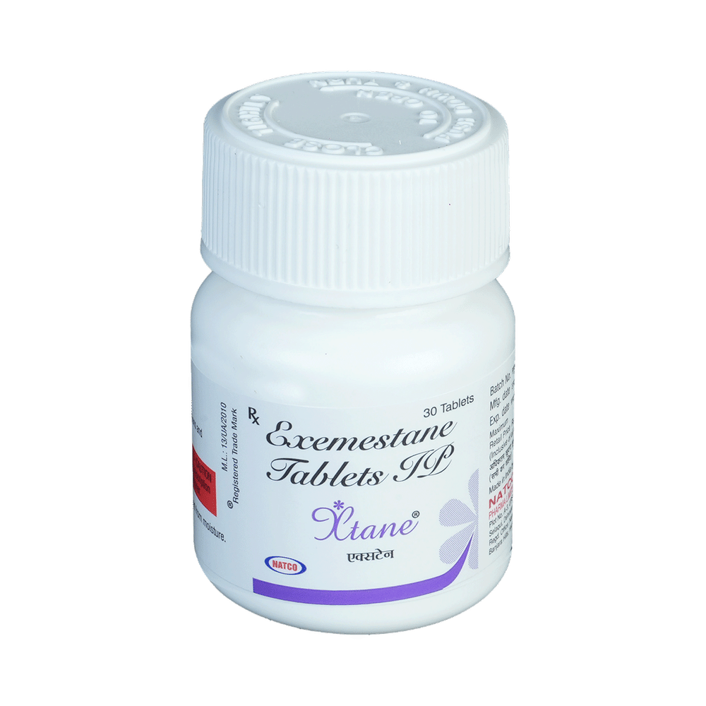 Xtane Tablet is an aromatase inhibitor. It is used in the treatment of breast cancer in women who have gone through menopause. It works by adjusting the level of estrogen and helps in slowing down the growth of cancer cells. Xtane Tablet is also used in combination with medication in early cancer to prevent the risk of coming back. It should be taken with food, but take it at the same time every day to get the most benefit. It should be taken as your doctor's advice. The dose and how often you take it depends on what you are taking it for. Your doctor will decide how much you need to improve your symptoms. Swallow the tablets whole with a drink of water. You should take this medicine for as long as it is prescribed for you.The most common side effects of the medicine include insomnia (difficulty sleeping), headache, nausea, increased appetite, and joint pain If these bother you, or appear serious, let your doctor know. There may be ways of reducing or preventing them.Before taking this medicine, tell your doctor if you are not gone through menopause and still having menstrual periods, or you have a problem with the liver or kidney. Your doctor should also know about all other medicines you are taking as many of these may make this medicine less effective or change the way it works. Tell your doctor if you are pregnant or breastfeeding. Your doctor may perform some blood tests to check for vitamin D level or bone density.