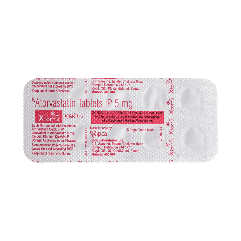 Xtor 5 Tablet belongs to a group of medicines called statins. It is used to lower cholesterol and to reduce the risk of heart disease. Cholesterol is a fatty substance that builds up in your blood vessels and causes narrowing, which may lead to a heart attack or stroke. Xtor 5 Tablet is a widely prescribed medicine and is regarded as safe for long-term use when taken as per the doctor's advice. It can be taken with a meal or on an empty stomach. You can take it at any time of the day, but try to take it at about the same time each day. Most people with high cholesterol do not feel ill, but stopping the medicine may increase cholesterol levels, thereby increasing the risk of heart disease and stroke.It is important to have your cholesterol levels checked regularly. This medicine is only one part of the treatment program, which should also include a healthy diet, regular exercise, smoking cessation, moderation of alcohol intake, and weight reduction. You can eat normally while taking this medicine, but try to avoid foods that are high in fat.Common side effects of this medicine include nausea, diarrhea, indigestion, muscle pain (on long-term use), and joint pain. These are usually mild and disappear after a short time. Consult your doctor if they persist or if you notice any yellowing of your eyes or get repeated or unexplained muscle pains.This medicine should not be used in some conditions, such as liver disease. Also, pregnant women and breastfeeding mothers should not take this medicine, as it may harm the developing baby. Diabetic patients should monitor their blood sugar levels while taking this medicine, as it may increase their blood sugar levels. Your doctor may check your liver function before starting the treatment and monitor it regularly thereafter.