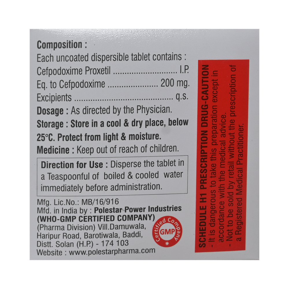 Salt Composition: Cefpodoxime Proxetil (200mg)