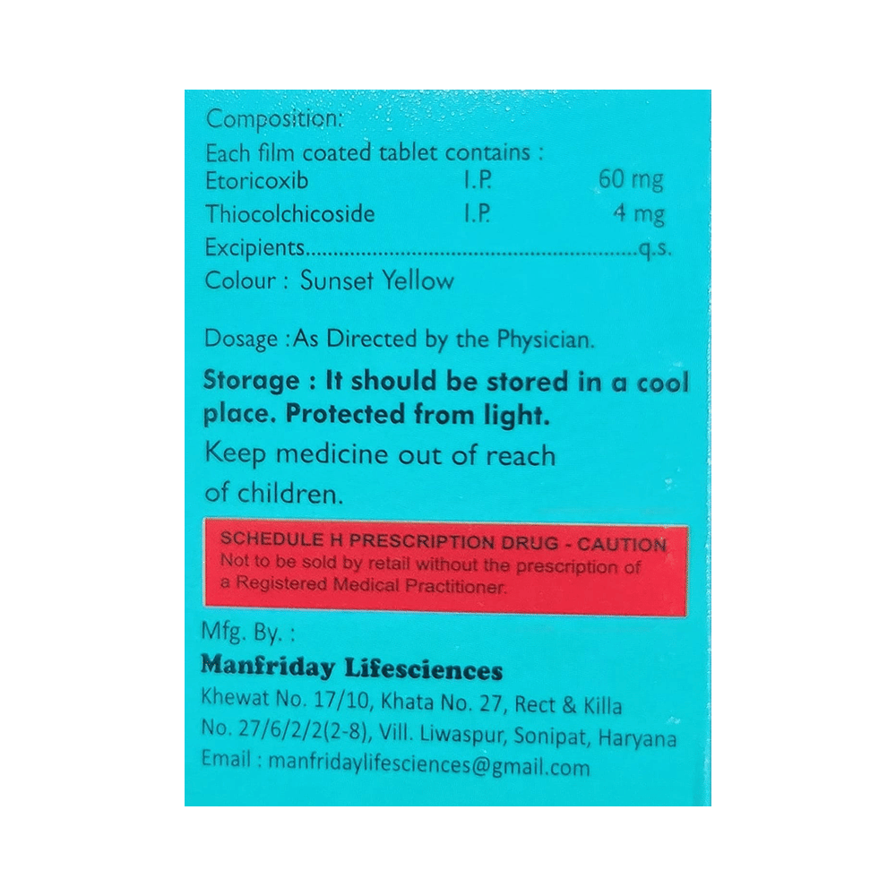Salt Composition: Etoricoxib (60mg) + Thiocolchicoside (4mg)