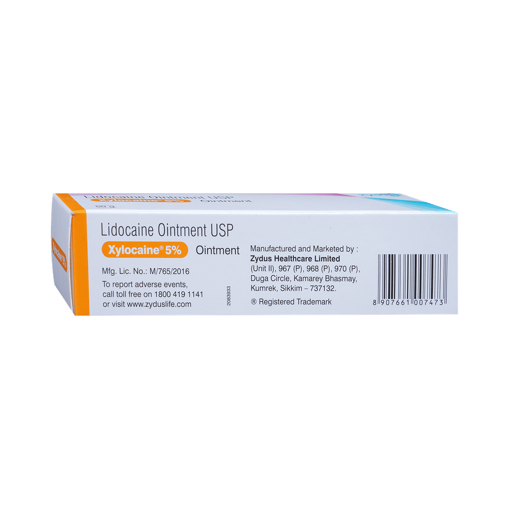 Xylocaine 5% Ointment is a local anesthetic used to temporarily numb certain areas of the body. It is used as an anesthetic lubricant to insert instruments in the human body for medical procedures (e.g., catheters). It is also used for the treatment of symptoms of painful inflammation of the urethra and bladder. The most common side effects of this medicine include redness, rash, burning, and itching at the site of application. These are usually mild and short-lived. Consult your doctor if any of the side effects persist or worry you.Before using it, tell your doctor if you have liver disease or are taking medicines for heart rhythm problems. Although medicines used on the skin are not normally affected by other medicines you should let your doctor know if you are taking any other medicines to be safe. Ask your healthcare team for advice if you are pregnant or breastfeeding.