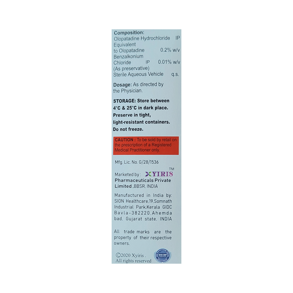 Xypat Eye Drop is an antiallergic medication. It works by blocking the action of a chemical messenger (histamine) which is responsible for red, itchy, and watery eyes.