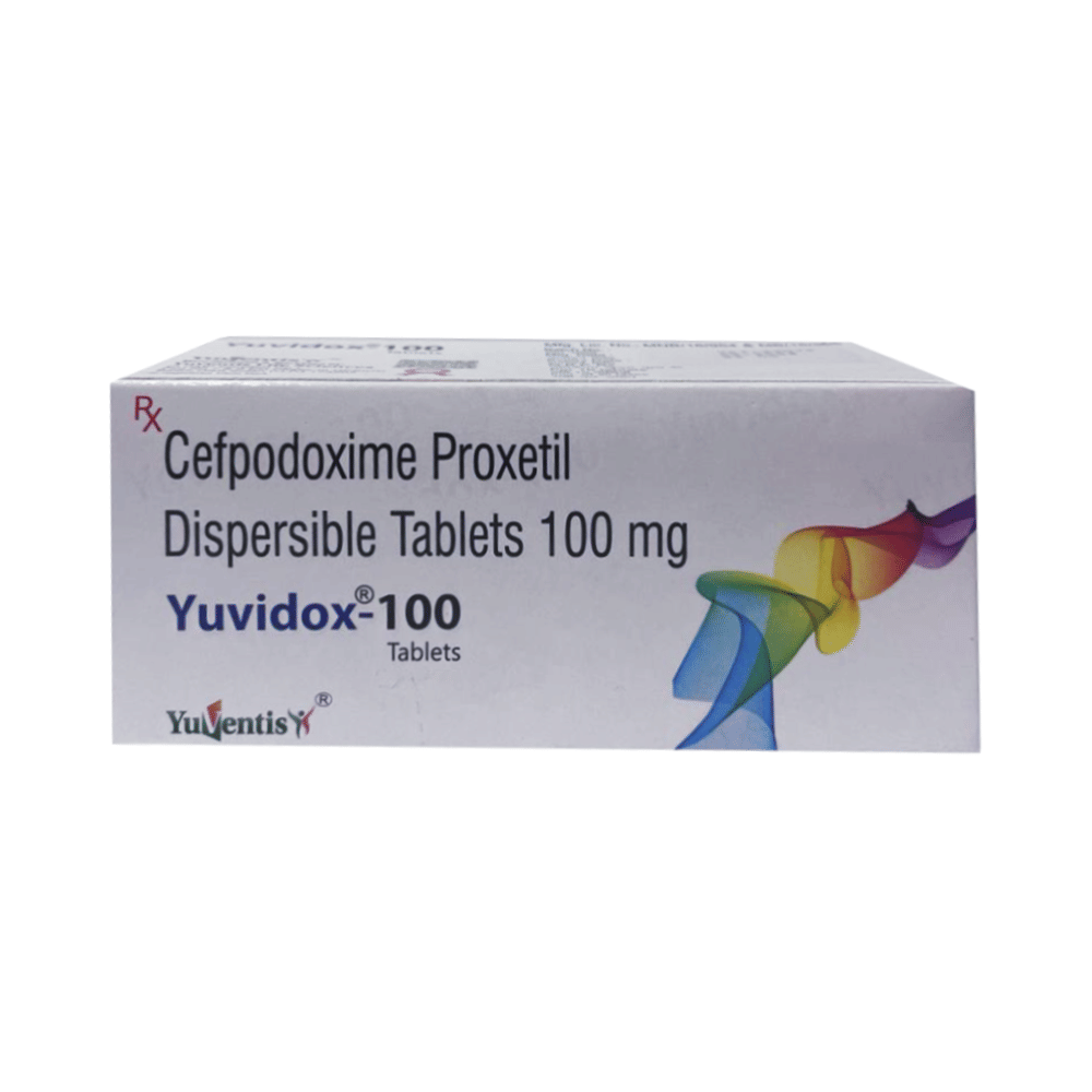 Yuvidox 100 Tablet DT is an antibiotic medicine used to treat bacterial infections in your body. It is effective in infections of the lungs (e.g., pneumonia), urinary tract, ear, nasal sinus, and throat. It kills bacteria, which helps to improve your symptoms. Yuvidox 100 Tablet DT should be taken with food. You should take it regularly at evenly spaced intervals or as per the schedule prescribed by your doctor. The dose will depend on what you are being treated for, but you should always complete a full course of treatment prescribed by your doctor.Do not stop taking it until you have finished, even when you feel better. If you stop taking it early, some bacteria may survive, and the infection may come back. It will not work for viral infections such as the flu or the common cold. Using any antibiotic when you do not need it can make it less effective for future infections.The most common side effects of this medicine include nausea, stomach pain, and headache. If any of these side effects persist or worsen, let your doctor know. They may be able to suggest ways to manage or treat them.Before using it, you should tell your doctor if you are allergic to any antibiotics or have any kidney or liver problems. If you are pregnant or breastfeeding, consult your doctor before using it. It may blur your vision or make you feel sleepy and dizzy. Do not drive if these symptoms occur.