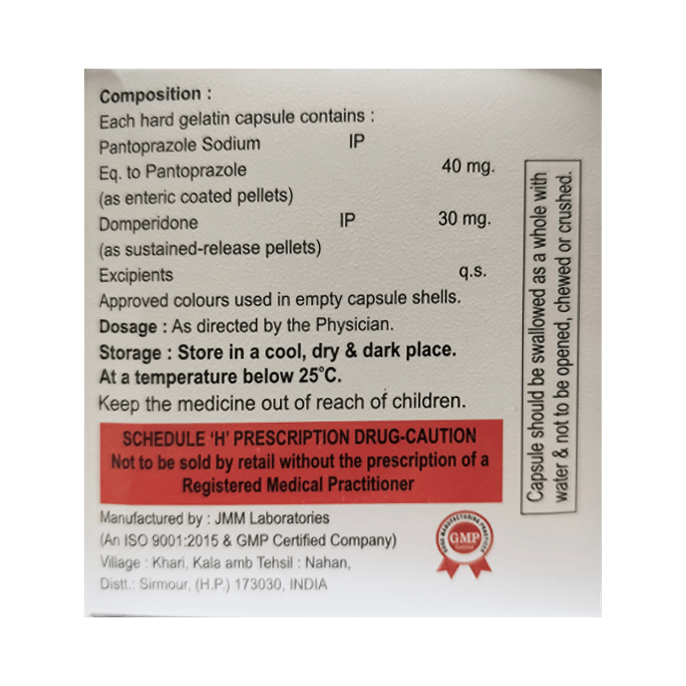 Salt Composition: Domperidone (30mg) + Pantoprazole (40mg)