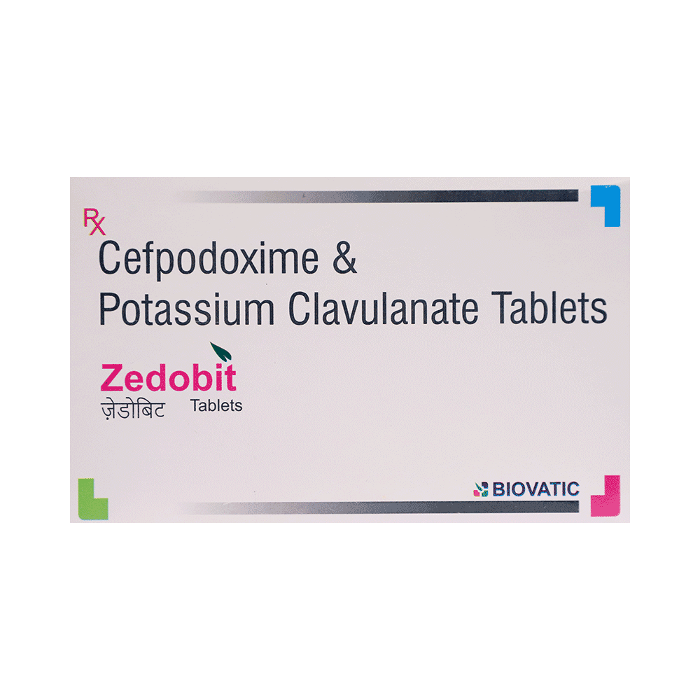 Zedobit Tablet is a combination of two medicines: Cefpodoxime Proxetil and Clavulanic Acid. Cefpodoxime Proxetil is an antibiotic. It works by preventing the formation of the bacterial protective covering which is essential for the survival of bacteria. Clavulanic Acid is a beta-lactamase inhibitor which reduces resistance and enhances the activity of Cefpodoxime Proxetil against bacteria.