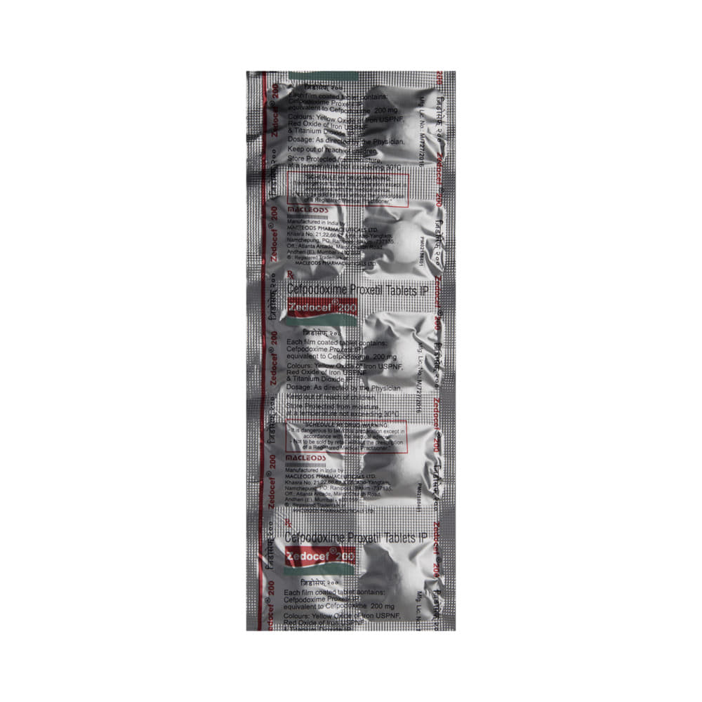 Zedocef 200 Tablet is an antibiotic medicine used to treat bacterial infections in your body. It is effective in infections of the lungs (e.g., pneumonia), urinary tract, ear, nasal sinus, and throat. It kills bacteria, which helps to improve your symptoms. Zedocef 200 Tablet should be taken with food. You should take it regularly at evenly spaced intervals or as per the schedule prescribed by your doctor. The dose will depend on what you are being treated for, but you should always complete a full course of treatment prescribed by your doctor.Do not stop taking it until you have finished, even when you feel better. If you stop taking it early, some bacteria may survive, and the infection may come back. It will not work for viral infections such as the flu or the common cold. Using any antibiotic when you do not need it can make it less effective for future infections.The most common side effects of this medicine include nausea, stomach pain, and headache. If any of these side effects persist or worsen, let your doctor know. They may be able to suggest ways to manage or treat them.Before using it, you should tell your doctor if you are allergic to any antibiotics or have any kidney or liver problems. If you are pregnant or breastfeeding, consult your doctor before using it. It may blur your vision or make you feel sleepy and dizzy. Do not drive if these symptoms occur.