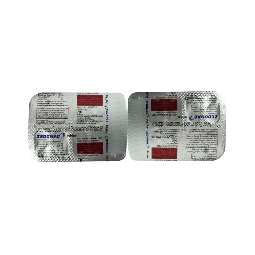 Zedonac Tablet is a combination of two medicines: Diclofenac and Paracetamol. These medicines work by blocking the action of chemical messengers responsible for pain, fever and inflammation (redness and swelling).