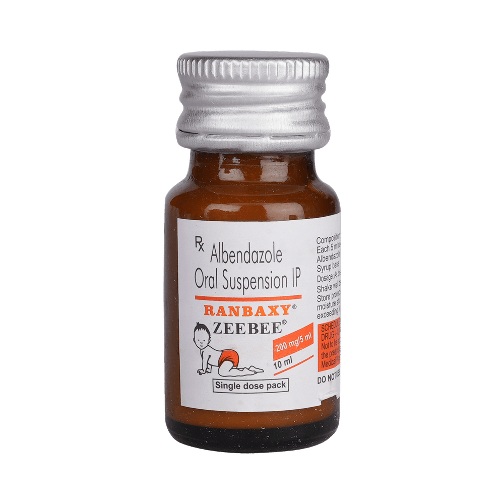 ZEEBEE 200 MG SUSPENSION is effective against a range of parasitic worm infections in children. It restrains the worms from absorbing the body's essential nutrients, causing them to lose their energy and leading to their eventual death. The dead worms are then removed from your child’s body through the stool. Give this medicine to your child by mouth, preferably with a fat-containing food such as milk. This will help your child’s body absorb this medicine better. In case your child vomits within 30 minutes of taking ZEEBEE 200 MG SUSPENSION, give the same dose again. The duration of the treatment depends on the type of worm your child is infected with. Usually, it is given as a single dose. Your child’s doctor may prescribe repeating this dose after two weeks to prevent re-infection. However, some specific types of infections may require you to give this medicine to your child for a few days to weeks. In such a case, you must give your child this medicine for the exact prescribed number of days because stopping this medicine too soon may cause re-infection.Nausea, vomiting, dizziness, headache, abdominal pain, loss of appetite, hair fall, mild fever, and sore throat are some of the common yet temporary side effects of this medicine. Rarely, it may cause bleeding which is a serious side effect of this medicine. Make sure to report to your child’s doctor if the side effects persist or become bothersome or if your child experiences bleeding.Before taking this medicine, let the doctor know if your child has had any previous episodes of medicine allergy, seizures, liver impairment, kidney malfunction, stomach problem, or blood disorder. This information is critical for dose alterations and for planning your child’s overall treatment.