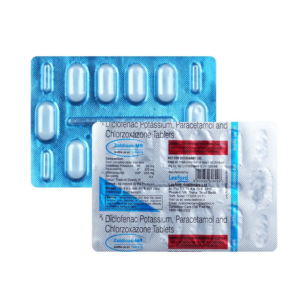 In Treatment of Pain due to muscle spasmZeldinac-MR Tablet is a combination medicine that is used to relieve pain, inflammation, and swelling in conditions that affect muscles. Also, it effectively relieves muscle stiffness or spasm, thereby improving muscle movement. It works by blocking chemical messengers in the brain that tell us we have pain.Take it as it is prescribed to get the most benefit. Do not take more or longer than needed as that can be dangerous. In general, you should take the lowest dose that works, for the shortest possible time. This will help you to go about your daily activities more easily and have a better, more active, quality of life.