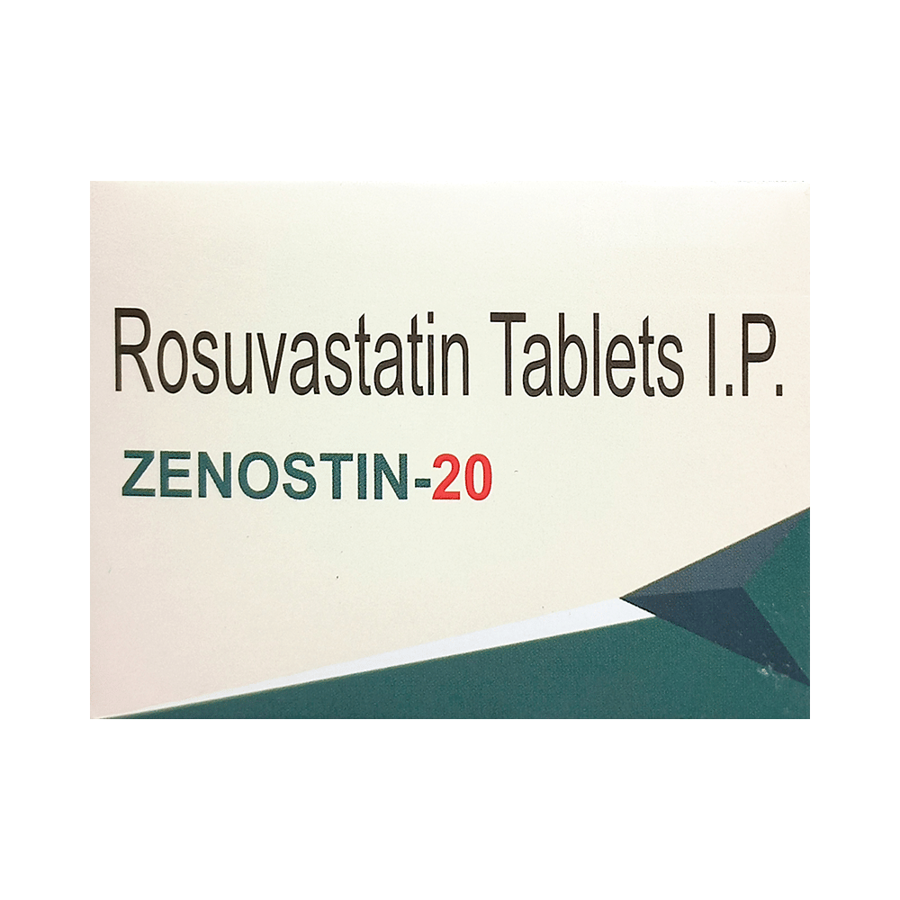 Zenostin 20 Tablet belongs to a group of medicines called statins. It is used to lower cholesterol and triglyceride levels and reduce the risk of heart disease. Cholesterol is a fatty substance that builds up in your blood vessels and causes narrowing, which may lead to a heart attack or stroke. Zenostin 20 Tablet is a widely prescribed medicine and is regarded as safe for long-term use. It can be taken with a meal or on an empty stomach. You can take it at any time of the day, but try to take it at the same time each day. Most people with high cholesterol do not feel ill. However, stopping your medicine may increase your cholesterol levels, making your condition worse and increasing your risk of heart disease and stroke.It is important to have your cholesterol levels checked regularly. This medicine is only one part of the treatment program, which should also include a healthy diet, regular exercise, smoking cessation, moderation of alcohol intake, and weight reduction. You can eat normally while taking this medicine, but try to avoid foods that are high in fat.Common side effects of this medicine include muscle pain, weakness, nausea, headache, and abdominal pain. These are usually mild and disappear after a short time. Consult your doctor if they persist or if you notice any yellowing of your eyes or get repeated or unexplained muscle pains.This medicine should not be used in conditions such as liver disease. Also, pregnant women and breastfeeding women should not take this medicine, as it may harm the developing baby. Diabetic patients should monitor their blood sugar levels while taking this medicine, as it may lead to an increase in blood sugar levels.