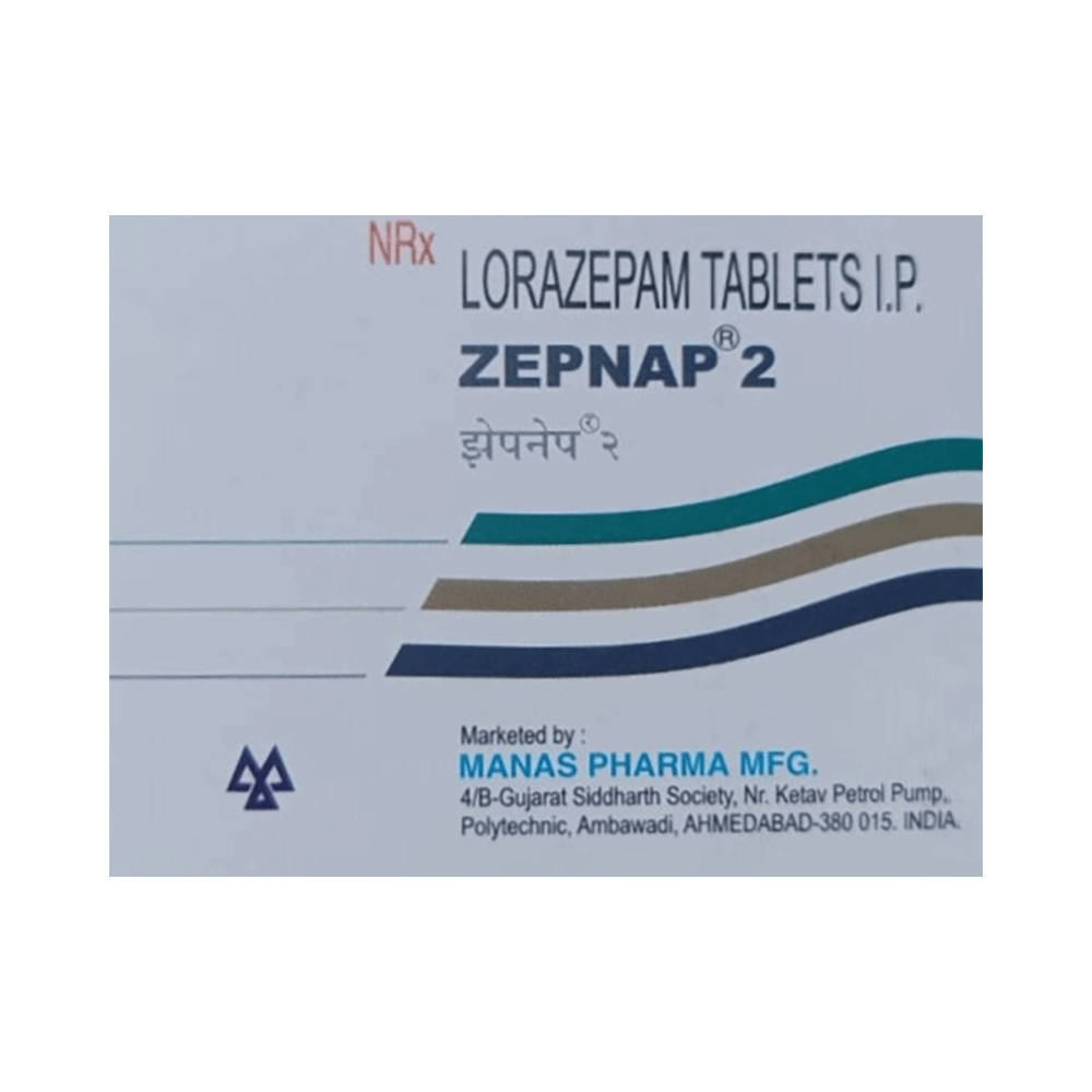 Zepnap 2mg Tablet is a prescription medicine used to treat symptoms of short term anxiety and anxiety disorders. It helps to decrease the abnormal and excessive activity of the nerve cells and calms the brain. Zepnap 2mg Tablet is taken by mouth with or without food. Take it at the same time each day as this helps to maintain a consistent level of medicine in the body. Take this medicine in the dose and duration as advised by your doctor as it has a high potential of habit-forming. If you have missed a dose, take it as soon as you remember it and finish the full course of treatment even if you feel better. It is important that this medication is not stopped suddenly without talking to the doctor as it may increase seizure frequency.Some common side effects of this medicine include fatigue and balance disorder. It may also cause dizziness and sleepiness, so do not drive or do anything that requires mental focus until you know how this medicine affects you.