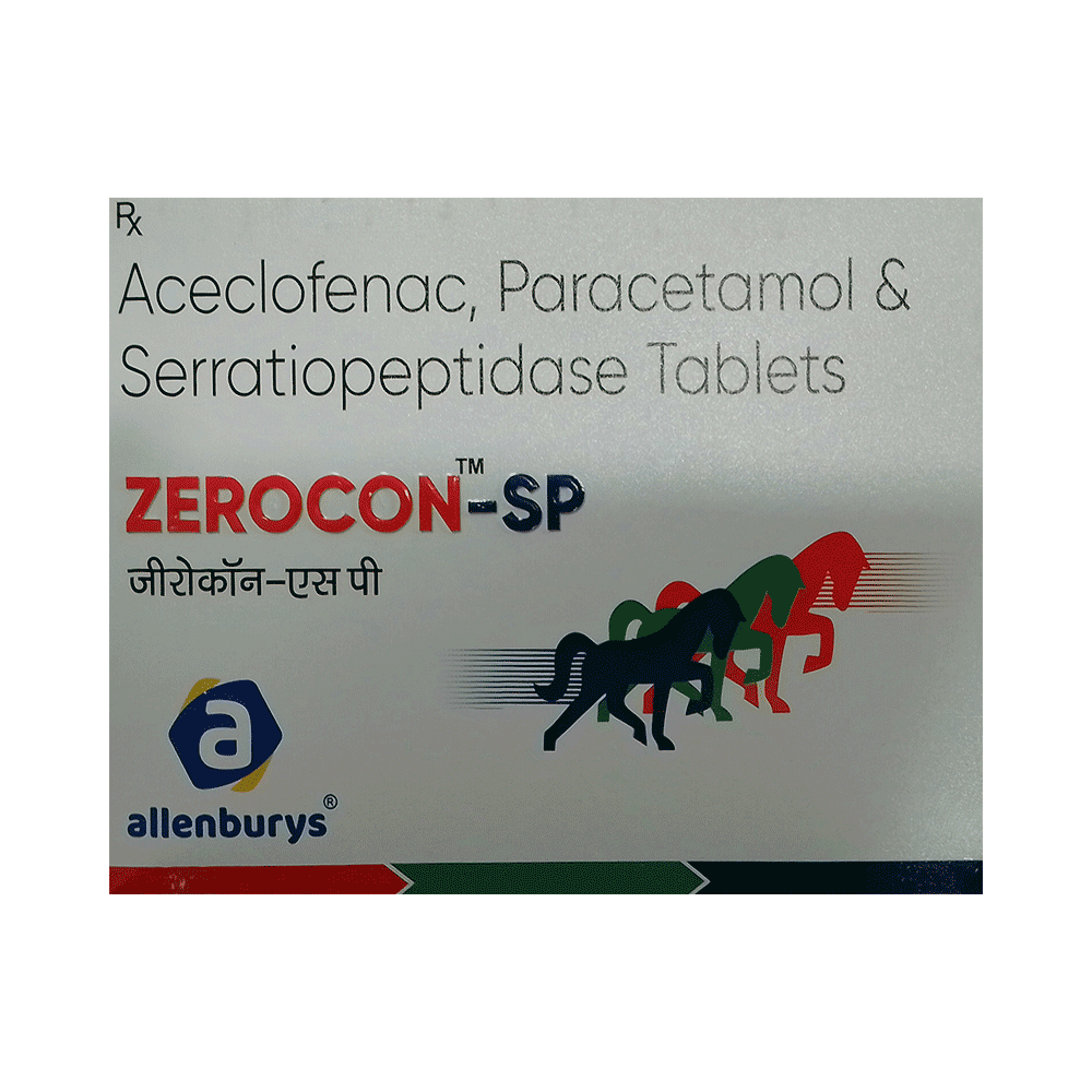 Zerocon-SP Tablet is a combination of three medicines: Aceclofenac, Paracetamol and Serratiopeptidase. Aceclofenac is a non-steroidal anti-inflammatory drug (NSAID), and Paracetamol is an antipyretic (fever reducer). They work by blocking the release of certain chemical messengers in the brain that cause pain and fever. Serratiopeptidase is an enzyme which works by breaking down abnormal proteins at the site of inflammation and promotes healing.
