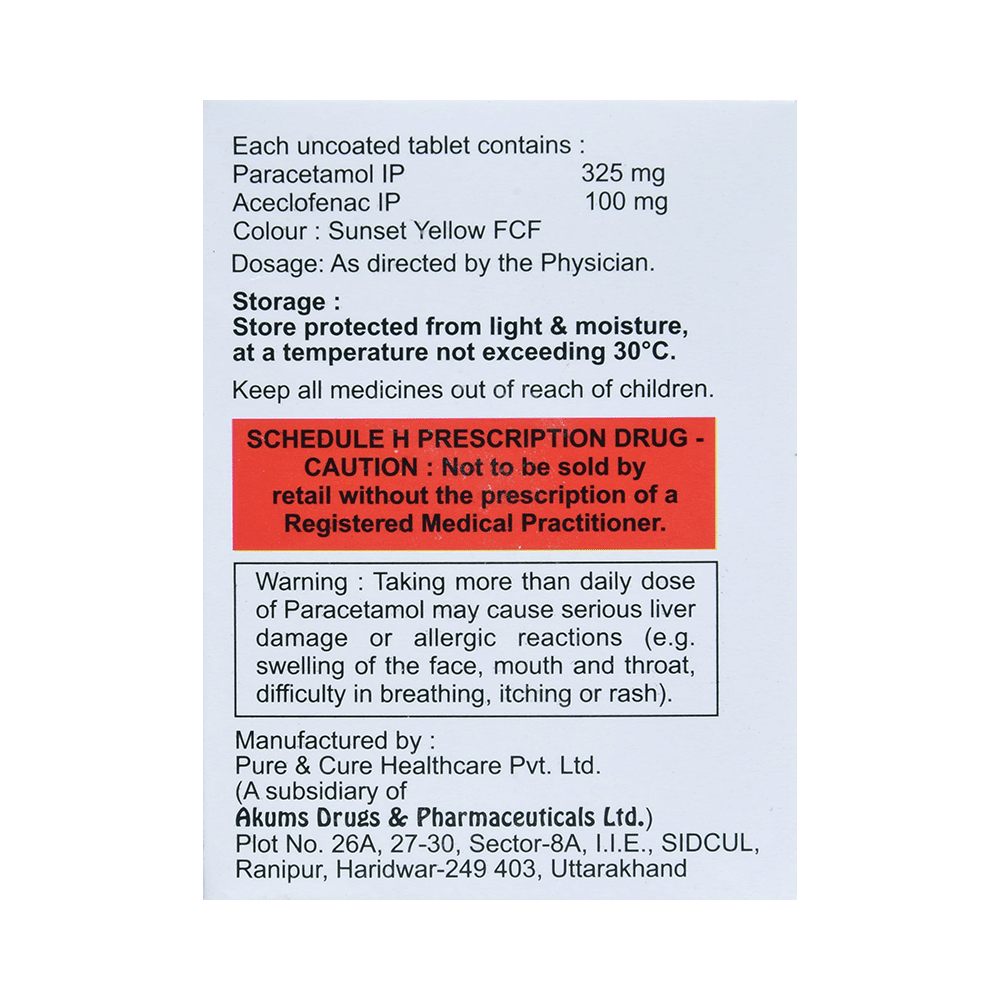 Salt Composition: Aceclofenac (100mg) + Paracetamol (325mg)