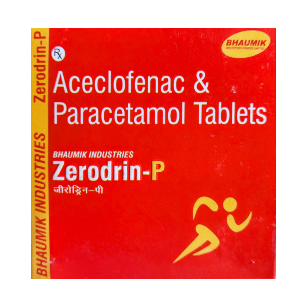 Zerodrin-P Tablet is a combination of two medicines: Aceclofenac and Paracetamol. These medicines work by blocking the action of chemical messengers responsible for pain, fever and inflammation (redness and swelling).