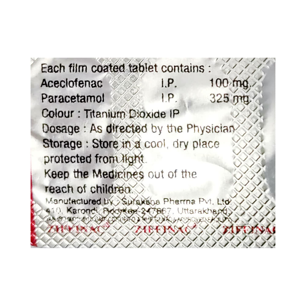 Ziffinac Tablet is a pain-relieving medicine. It reduces pain and inflammation in conditions like rheumatoid arthritis, ankylosing spondylitis, and osteoarthritis. It may also relieve muscle pain, back pain, toothache, or pain in the ear and throat. Ziffinac Tablet should be taken with or without food. It should be taken regularly as advised by your doctor. Your doctor may change the dose and time between doses according to your pain level and needs. Do not take more or use it for a longer duration than recommended by your doctor.Some of the common side effects of this medicine include nausea, vomiting, stomach pain, heartburn, and diarrhea. You should let your doctor know if any of these side effects bother you or if they do not go away with time. Your doctor may help you with ways to reduce or prevent these side effects by prescribing an alternative medicine or adjusting the dose.Ziffinac Tablet may not be suitable for everyone. Before taking it, let your doctor know if you have any problems with your heart, kidneys, or liver or have stomach ulcers. Also, tell your doctor about all the other medicines you take to ensure they are safe. Pregnant and breastfeeding mothers should consult their doctors before using Ziffinac Tablet.