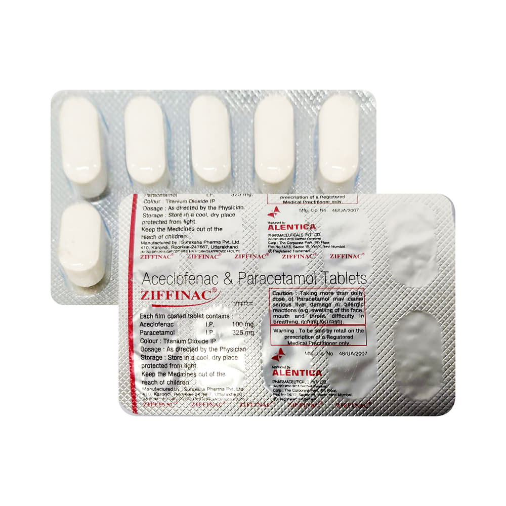 Ziffinac Tablet is a combination of two medicines: Aceclofenac and Paracetamol. These medicines work by blocking the action of chemical messengers responsible for pain, fever and inflammation (redness and swelling).