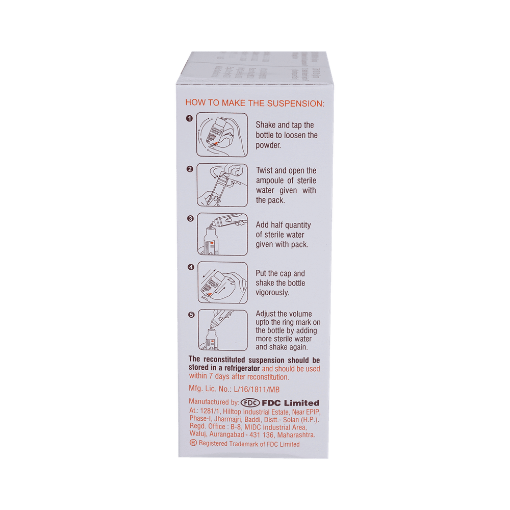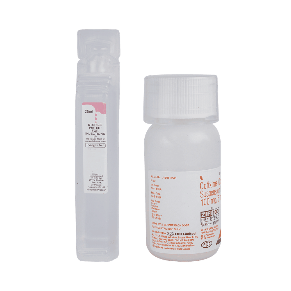 Zifi 100 Dry Syrup is an antibiotic belonging that is used to treat a variety of bacterial infections. It is effective in infections of the respiratory tract (eg. pneumonia), urinary tract, ear, nasal sinus, throat, and some sexually transmitted diseases. Zifi 100 Dry Syrup should be given under the supervision of a doctor or health professional. Use it regularly at evenly spaced intervals as per the schedule prescribed by your doctor. Using it at the same time every day will help you remember to take it. The dose will depend on what you are being treated for, but you should always complete the full course of this antibiotic as prescribed by your doctor. Do not stop taking it until you have finished, even when you feel better. If you stop taking it early, some bacteria may survive and the infection may come back or worsen. It will not work for viral infections such as flu or common cold. Using any antibiotic when you do not need it can make it less effective for future infections.The most common side effects of this medicine include nausea, stomach pain, indigestion, and diarrhea. These are usually mild but let your doctor know if they bother you or do not go away.Before taking it, you should let your doctor know if you are allergic to any antibiotics or have any kidney or liver problems. You should also let your healthcare team know all other medicines you are taking as they may affect, or be affected by this medicine. This medicine is generally regarded as safe to use during pregnancy and breastfeeding if prescribed by a doctor.