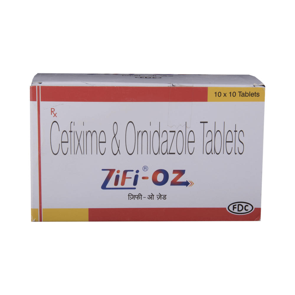 Zifi OZ Tablet is a combination medicine. It is prescribed to treat various types of bacterial infections. It fights against the microorganisms to prevent their growth and further spread of the infection. Zifi OZ Tablet is a prescription medicine. It is advised to take it as per the prescription. It should be taken with food and it must be taken at a fixed time to ensure better efficacy. Do not consume more than the recommended dose, as this may have harmful effects on your body. If you miss a dose, take it as soon as you remember. The course of the treatment must be completed even if you feel better. Sudden discontinuation of the treatment may affect the potency of the medicine.Some common side effects of this medicine are nausea, vomiting, diarrhea, indigestion, etc. If any of the side effects get aggravated, you must consult your doctor immediately. If you experience any allergic reaction (rashes, itching, swelling, shortness of breath, etc.), you must seek immediate medical help.Before taking this medicine, you should tell your doctor if you are taking any medicines for any health condition. Pregnant or breastfeeding women should also consult with their doctor before taking it. Avoid drinking alcohol as it can cause excessive drowsiness with this medicine. It usually does not impair your ability to drive, but you should not drive if it makes you feel sleepy or dizzy.
