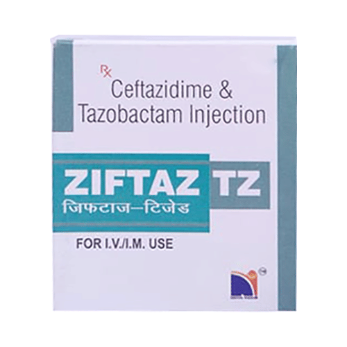 Ziftaz TZ Injection is a combination medicine. It is prescribed to treat various types of bacterial infections. It fights against the microorganisms to prevent their growth and further spread of the infection. Ziftaz TZ Injection should only be administered under the supervision of a healthcare professional. Do not miss any scheduled appointments for taking this medicine. The course of the treatment must be completed even if you feel better. Sudden discontinuation of the treatment may affect the potency of the medicine.Some common side effects of this medicine are nausea, vomiting, diarrhea, indigestion, etc. If any of the side effects get aggravated, you must consult your doctor immediately. If you experience any allergic reaction (rashes, itching, swelling, shortness of breath, etc.), you must seek immediate medical help.Before taking this medicine, you should tell your doctor if you are taking any medicines for any health condition. Pregnant or breastfeeding women should also consult with their doctor before taking it. Avoid drinking alcohol as it can cause excessive drowsiness with this medicine. It usually does not impair your ability to drive, but you should not drive if it makes you feel sleepy or dizzy. You must take adequate rest for a faster recovery, also take a healthy diet and drink plenty of water. Your doctor may ask for a few laboratory and diagnostic tests to know the effects of the medicine on your body.