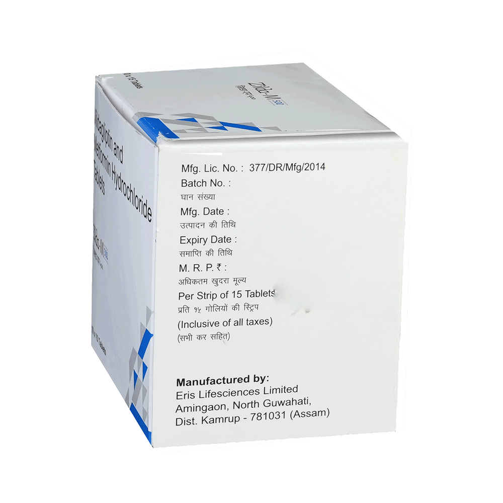 In Treatment of Type 2 diabetes mellitusZilda M 500mg/50mg Tablet is a combination of two medicines that work together in different ways to lower your blood glucose levels. Lowering blood glucose levels is an essential part of managing diabetes. If you can control your blood glucose level, your risk of getting any of the serious complications of diabetes such as kidney damage, eye damage, nerve problems, and loss of limbs is also lowered. Additionally, proper control of diabetes can also reduce the risk of heart disease and stroke. Taking this medicine regularly along with proper diet and exercise will help you live a normal, healthy life. You should keep using this medicine for as long as it is prescribed because it is protecting your future health.
