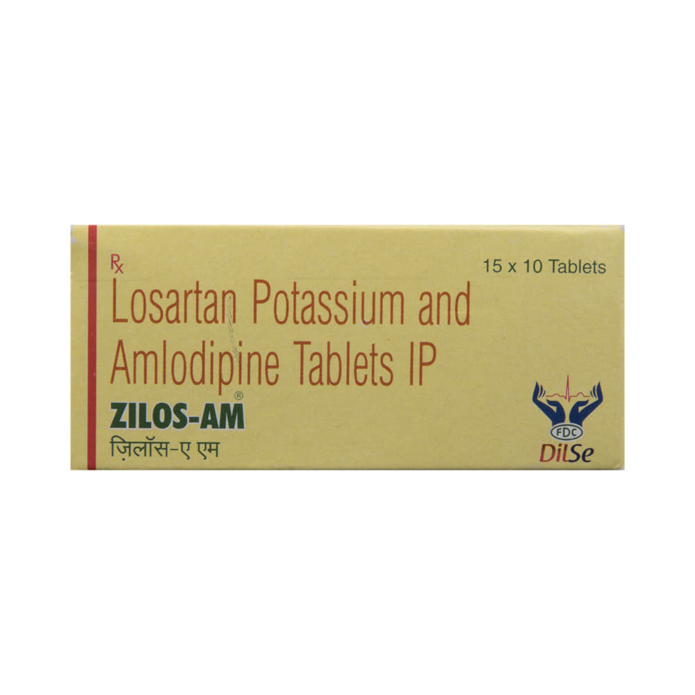 Zilos-AM Tablet is a combination of two medicines: Losartan and Amlodipine which lower blood pressure effectively. Losartan is an angiotensin receptor blocker (ARB) and Amlodipine is a calcium channel blocker (CCB). They work by relaxing the blood vessels and making the heart more efficient at pumping blood throughout the body.