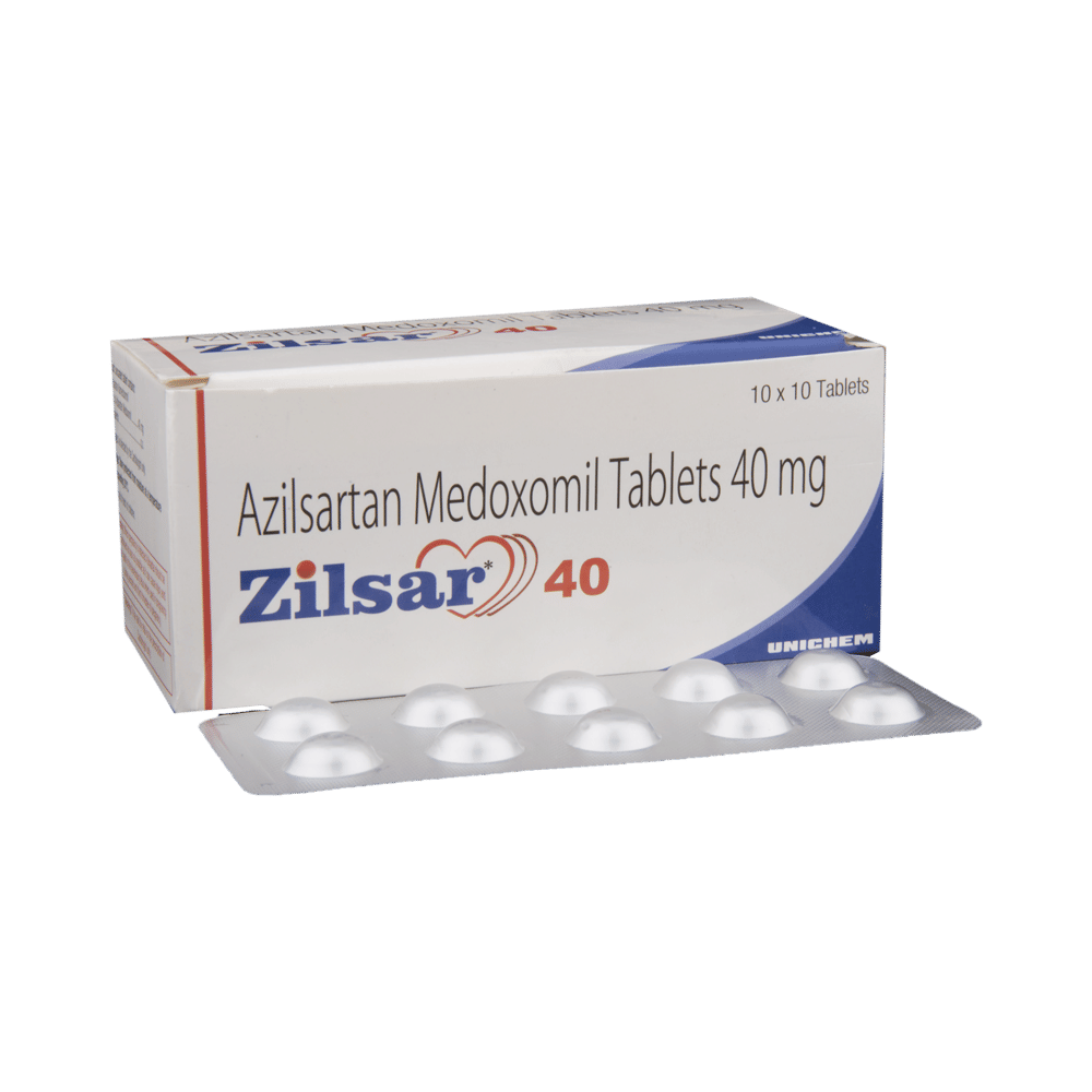 ZIlsar 40 Tablet is a medicine used to treat high blood pressure and heart failure. Lowering blood pressure helps to prevent future heart attack and stroke. This medicine is also effective in preserving kidney function in patients with diabetes. ZIlsar 40 Tablet can be prescribed either alone or in combination with other medicines. It may be taken with or without food during the day or at night. However, try to take it at the same time each day to get the most benefit. It is important to continue taking it regularly even if you feel well or if your blood pressure is controlled. Most people with high blood pressure do not feel ill, but if you stop taking this medicine, your condition could get worse. This is a widely used medicine and is considered safe for long-term use.Making some changes in your lifestyle will also help lower your blood pressure. These may include regular exercise, losing weight, smoking cessation, reducing alcohol intake, and reducing the amount of salt in your diet as advised by your doctor. This medicine is tolerated well by most patients and has few side effects. Dizziness, particularly after the first dose, is known to occur in some people. This may be associated with headache. Let your doctor know if these side effects bother you or do not go away. No weight gain has been seen with the regular use of this medicine.Before taking this medicine, let your doctor know if you have any kidney or liver problems. Pregnant or breastfeeding mothers should also consult their doctor before taking it. Your doctor may check your kidney function, blood pressure, and potassium levels in your blood at regular intervals while you are taking this medicine.