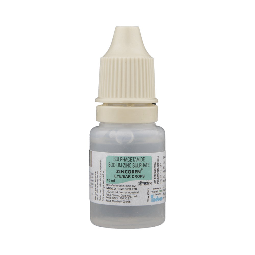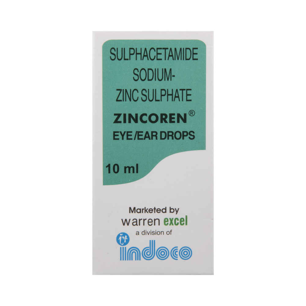 Zincoren Eye/Ear Drops is a medicine used in the treatment of bacterial infections in the eye or ear. It provides relief from itching, irritation, redness, and teary eyes. It also draws out water from the swollen cornea and speeds up the recovery process. Zincoren Eye/Ear Drops is to be used only in the affected eye. Use it in the dose and duration as advised by the doctor. Read the label carefully for instruction before you use the medicine. Wash your hands before using this medicine. Do not use too much or too little. Use it in the exact dose as prescribed by the doctor or as instructed in the label. Use of this medicine may cause discomfort, irritation, and burning sensation immediately on instillation. These are usually temporary and resolve with time. However, if they persist or get worse, inform your doctor. In case of accidental contact with your ears, nose, or mouth, immediately rinse it with water.Inform your doctor if you have a known allergy to any of the ingredients in this medicine or if you are taking any other medication. It is advised not to drive or operate heavy machinery immediately after using this medicine as it may cause temporary blurring of vision and may affect your ability to drive.