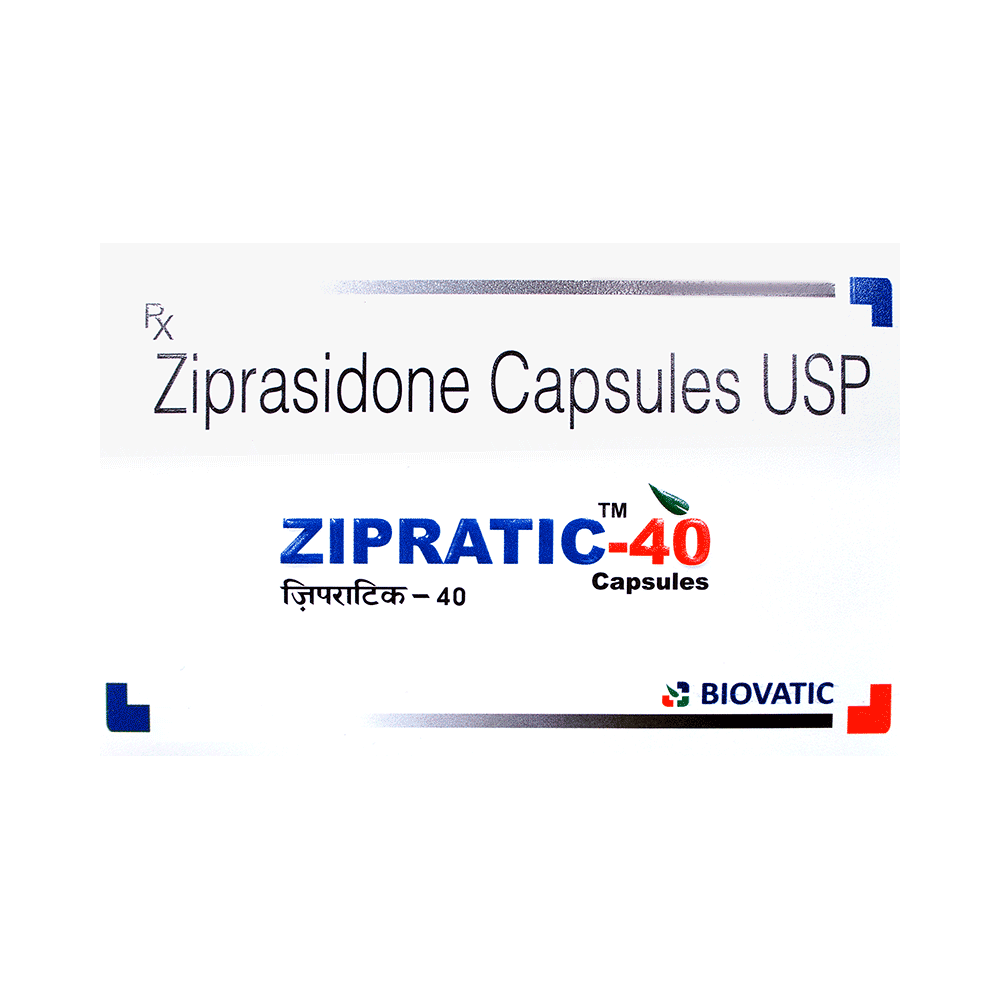 Zipratic 40 Capsule is used in the treatment of schizophrenia (a mental disorder that can result in hallucinations or delusions and also adversely affects a person’s ability to think and behave) and mania. Zipratic 40 Capsule should be taken with food, preferably at the same time, each day. Take this in the dose and duration as advised by your doctor and if you have missed a dose, take it as soon as you remember. It is important that this medication is not stopped suddenly without talking to your doctor as it may worsen your symptoms. However, discontinue this medicine immediately if you experience Neuroleptic malignant syndrome (NMS), characterized by fever, muscle rigidity, and altered consciousness or seizures.Some common side effects of this medicine include headache, nausea, vomiting, abnormal vision, and dystonia (involuntary muscle contractions). Initially, this medicine may cause a sudden drop in blood pressure when you change positions, so it is better to rise slowly if you have been sitting or lying down. It also causes dizziness and sleepiness, so do not drive or do anything that requires mental focus until you know how this medicine affects you. This medicine may increase your weight but, modifying your lifestyle by having a healthy diet and exercising regularly can reduce this side effect.You should be cautious while using this medicine as it may increase the risk of developing diabetes, so it is better to monitor glucose regularly. Inform your doctor if you develop any unusual changes in mood or behavior, new or worsening depression, or suicidal thoughts while taking this medicine.