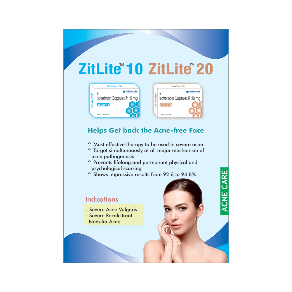 Zitlite 10 Capsule is a derivative of vitamin A. It acts on glands (sebaceous) to reduce the production of a natural substance (sebum) that causes acne. Also, the controlled sebum production kills acne-causing bacteria. It also works as an anti-inflammatory to decrease inflammation (redness and swelling).