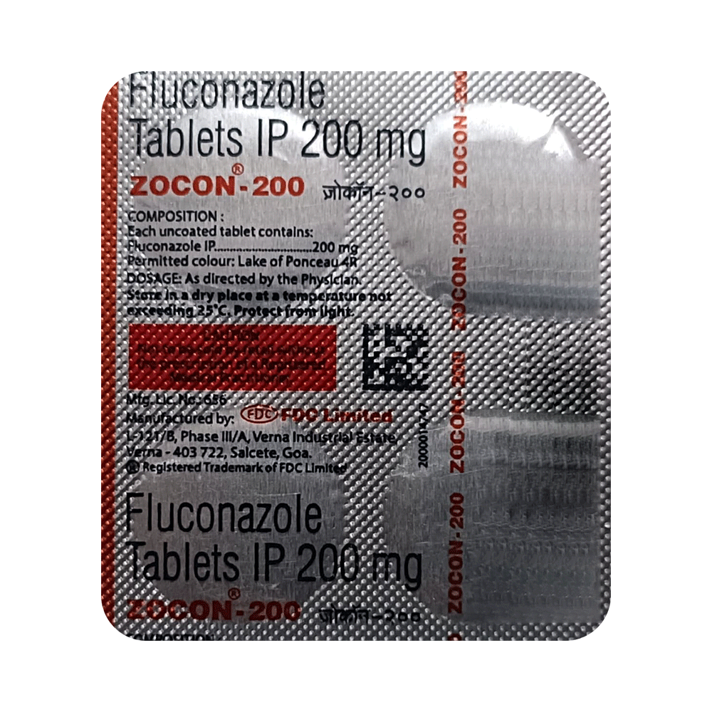 In Treatment of Fungal infectionsZOCon 200 Tablet is an antifungal medicine. It works by killing and stopping the growth of fungi that causes the infection. It helps treat infections of the mouth, throat, vagina, and other parts of the body.The dose and duration of treatment will depend on what you are being treated for. Make sure you complete the full course of treatment. This will ensure that the infection is completely cured and prevent it from returning.