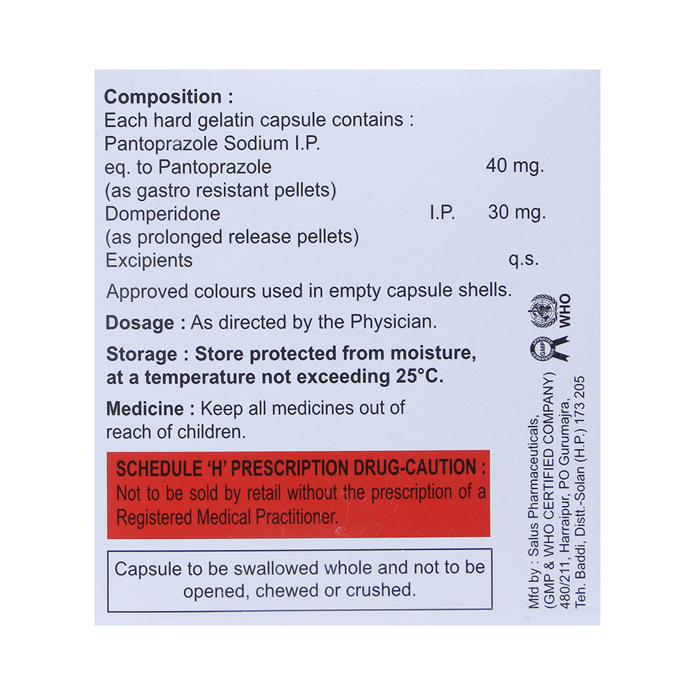 Salt Composition: Domperidone (30mg) + Pantoprazole (40mg)
