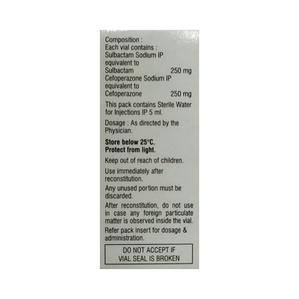 Salt Composition: Cefoperazone (250mg) + Sulbactam (250mg)