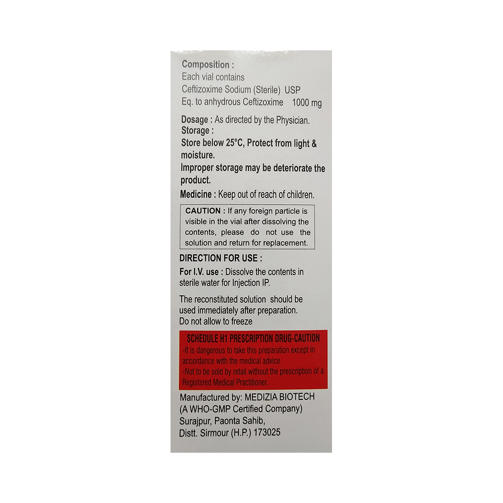 Salt Composition: Ceftizoxime (1000mg)