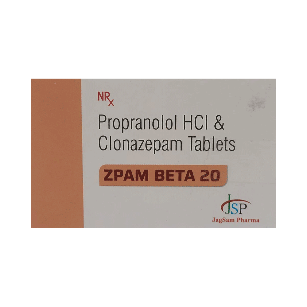 Zpam Beta 20 Tablet is a prescription medicine used to treat anxiety disorder. It calms the brain by decreasing the abnormal and excessive activity of the nerve cells. It blocks the action of certain chemical messengers on the heart and blood vessels. This reduces heart rate and blood pressure. Zpam Beta 20 Tablet should be taken on an empty stomach. However, it is advised to take it at the same time each day as this helps to maintain a consistent level of medicine in the body. Take this medicine in the dose and duration advised by your doctor as it has high habit-forming potential. If you miss a dose of this medicine, take it as soon as you remember. Finish the full course of treatment even if you feel better. It is important not to stop taking this medicine suddenly as it may cause withdrawal symptoms. Avoid consuming alcohol while taking this medicine as this may reduce its effectiveness.Some common side effects of this medicine include confusion, memory impairment, slow heart rate, tiredness, and nightmare. It may also cause dizziness and sleepiness. So, do not drive or do anything that requires mental focus until you know how this medicine affects you. It is important to inform your doctor if you develop any unusual changes in mood or depression as this medicine may cause suicidal thoughts.Take caution while taking medicine if you are suffering from liver disease. Your doctor should also know about all other medicines you are taking as many of these may make this medicine less effective or change the way it works. Inform your doctor if you are pregnant, planning pregnancy, or breastfeeding.