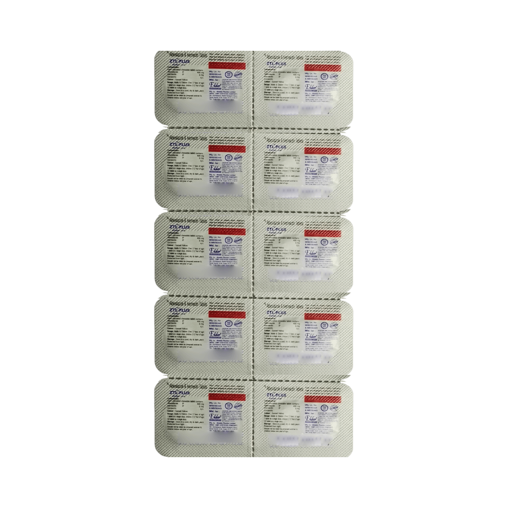ZTL Plus Tablet is a combination medicine that is used in the treatment of parasites and worm infestations in the body. It fights against the worms to treat the infection. ZTL Plus Tablet is a prescription medicine. It is advised to take it as per the prescription. It can be taken with or without food, but it must be taken at a fixed time to ensure better efficacy. Do not consume more than the recommended dose, as this may have harmful effects on your body. If you miss a dose, take it as soon as you remember. The course of the treatment must be completed even if you feel better. Sudden discontinuation of the treatment may affect the potency of the medicine.Some common side effects of this medicine are nausea, vomiting, diarrhea, flatulence, etc. If any of the side effects get aggravated, you must consult your doctor immediately. If you experience any allergic reaction (rashes, itching, swelling, shortness of breath, etc.), you must seek immediate medical help.Before taking this medicine, you should tell your doctor if you are taking any medicines for any health condition. Pregnant or breastfeeding women should also consult with their doctor before taking it. Avoid drinking alcohol as it can cause excessive drowsiness with this medicine. It usually does not impair your ability to drive, but you should not drive if it makes you feel sleepy or dizzy. You must take adequate rest for a faster recovery, also take a healthy diet and drink plenty of water. Your doctor may ask for a few laboratory and diagnostic tests to know the effects of the medicine on your body.