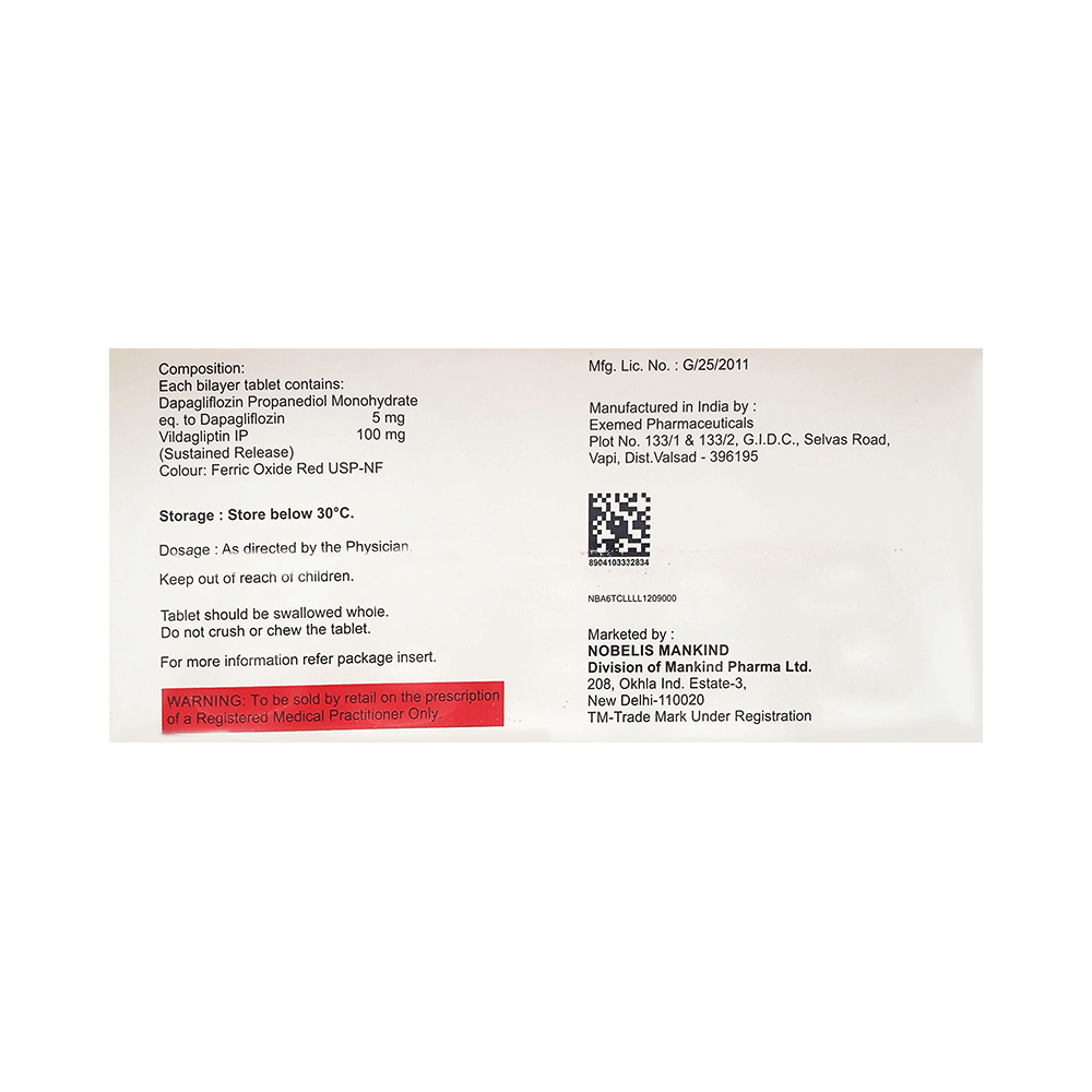 Salt Composition: Dapagliflozin (5mg) + Vildagliptin (100mg)