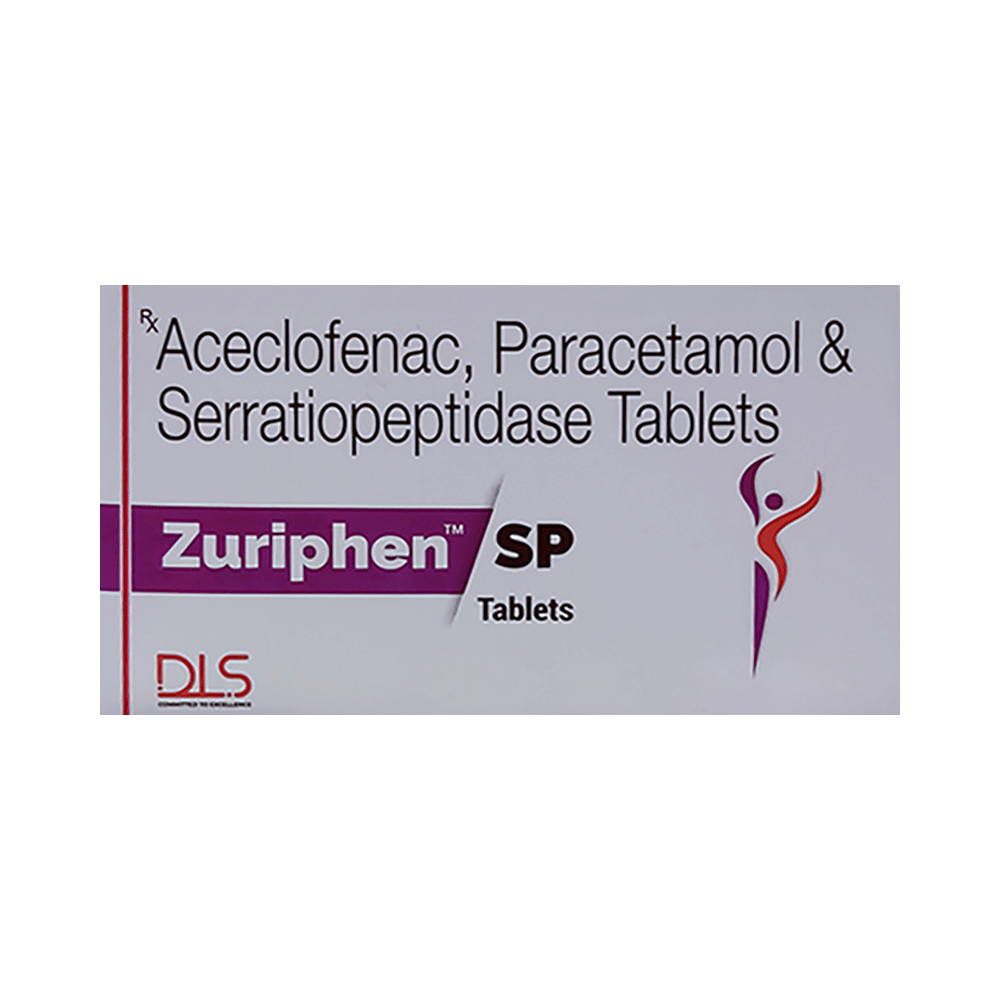 Zuriphen SP Tablet is a combination of three medicines: Aceclofenac, Paracetamol and Serratiopeptidase. Aceclofenac is a non-steroidal anti-inflammatory drug (NSAID), and Paracetamol is an antipyretic (fever reducer). They work by blocking the release of certain chemical messengers in the brain that cause pain and fever. Serratiopeptidase is an enzyme which works by breaking down abnormal proteins at the site of inflammation and promotes healing.