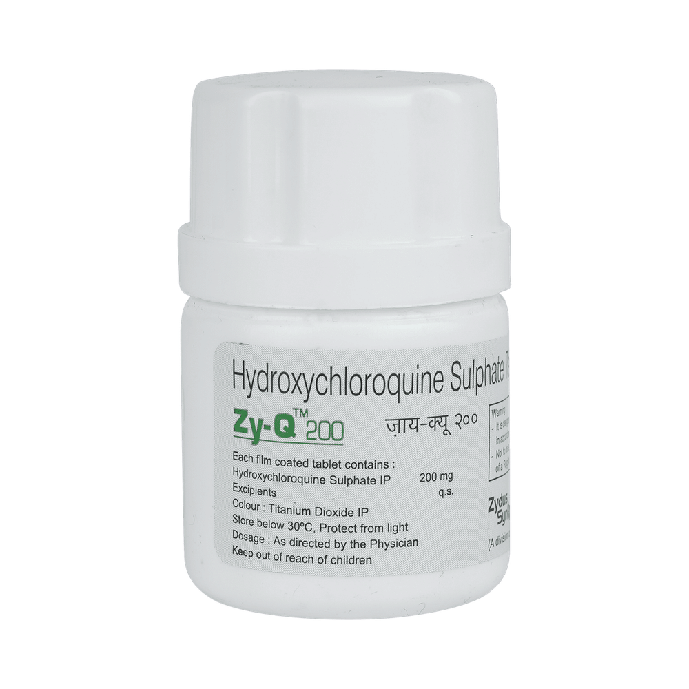 ZY-Q 200 Tablet is used to treat autoimmune conditions such as rheumatoid arthritis and systemic lupus erythematosus. It slows the disease's progression and relieves pain, swelling, and redness. It is also used in patients with type 2 diabetes mellitus to improve glycemic control. ZY-Q 200 Tablet should be taken with food. This will prevent you from getting an upset stomach upset. You should take it regularly and at the same time each day to get the maximum benefit from it. Keep taking it as recommended by your doctor and complete the dose even if you feel better.The most common side effects of this medicine include nausea, vomiting, diarrhea, and abdominal pain. Consult with your doctor if any of these side effects do not go away with time or get worse. Your doctor may help with ways to reduce or prevent these symptoms.To make sure the medicine is safe for you, before taking this medicine, let your doctor know if you have any problems with your heart, kidneys, or liver. Also, tell your doctor about all the other medicines you are taking. This medicine is contraindicated in the presence of retinal or visual field changes and long-term therapy in children. Your doctor may recommend regular eye tests to check your vision while on this medication. Pregnant and breastfeeding mothers should consult with their doctors before taking the medicine.