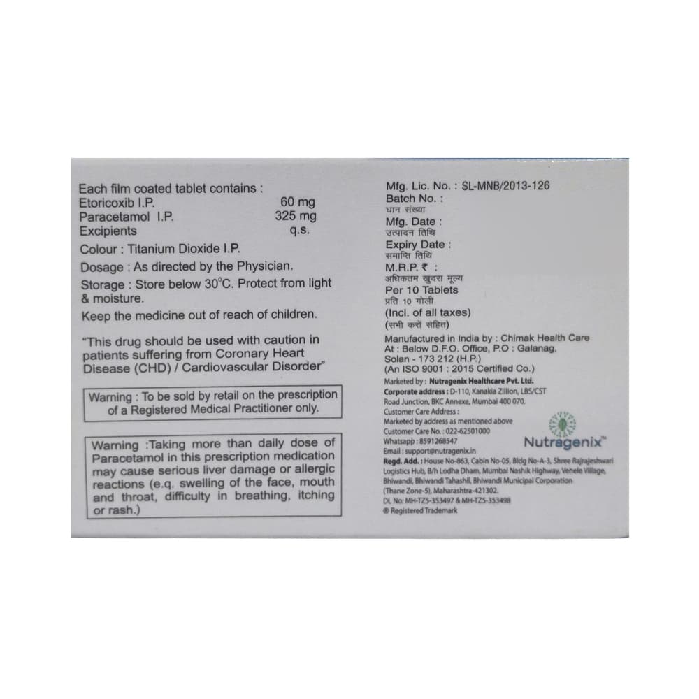 Salt Composition: Etoricoxib (60mg) + Paracetamol (325mg)