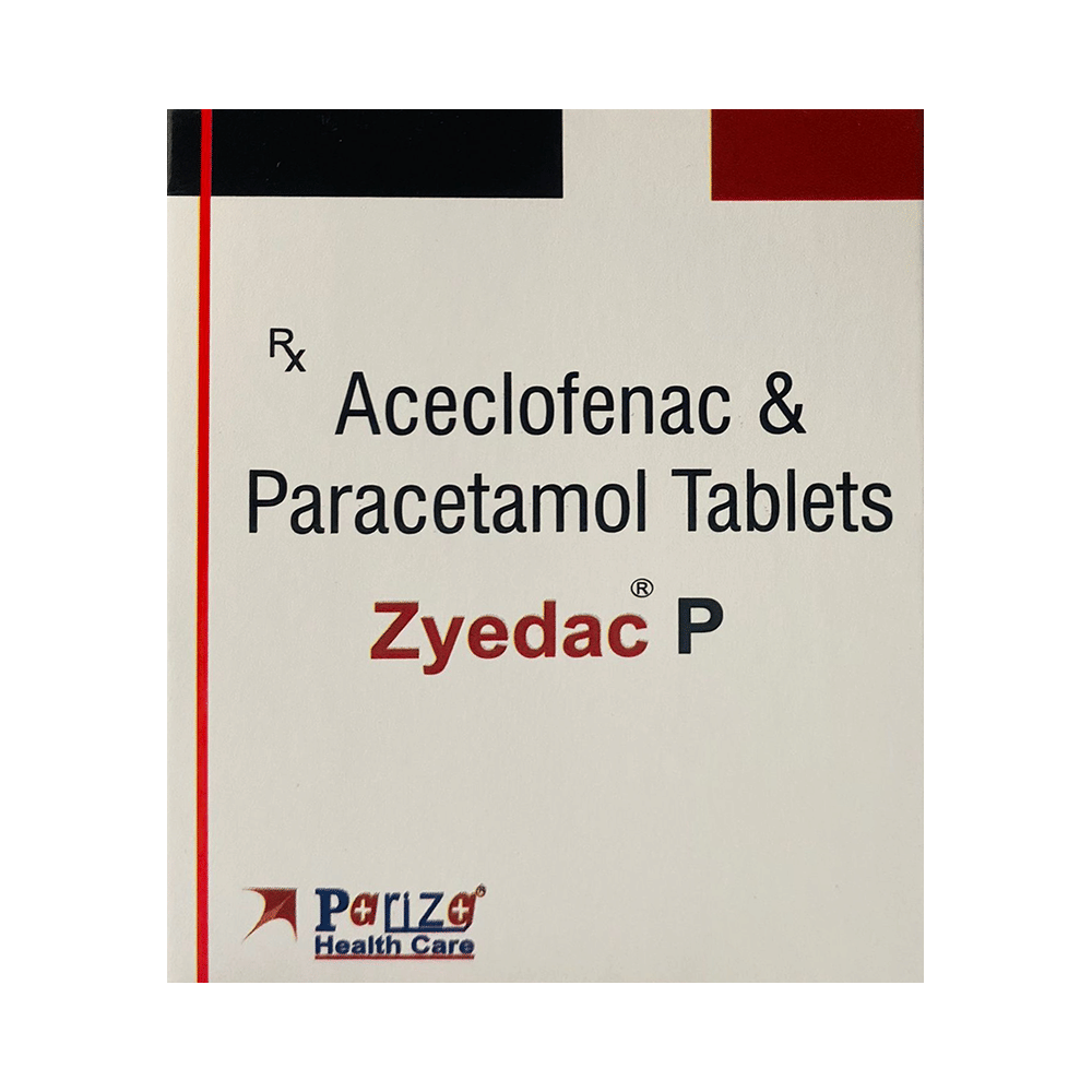 Zyedac P Tablet is a pain-relieving medicine. It reduces pain and inflammation in conditions like rheumatoid arthritis, ankylosing spondylitis, and osteoarthritis. It may also relieve muscle pain, back pain, toothache, or pain in the ear and throat. Zyedac P Tablet should be taken with or without food. It should be taken regularly as advised by your doctor. Your doctor may change the dose and time between doses according to your pain level and needs. Do not take more or use it for a longer duration than recommended by your doctor.Some of the common side effects of this medicine include nausea, vomiting, stomach pain, heartburn, and diarrhea. You should let your doctor know if any of these side effects bother you or if they do not go away with time. Your doctor may help you with ways to reduce or prevent these side effects by prescribing an alternative medicine or adjusting the dose.Zyedac P Tablet may not be suitable for everyone. Before taking it, let your doctor know if you have any problems with your heart, kidneys, or liver or have stomach ulcers. Also, tell your doctor about all the other medicines you take to ensure they are safe. Pregnant and breastfeeding mothers should consult their doctors before using Zyedac P Tablet.