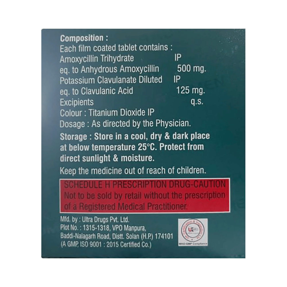 Salt Composition: Amoxycillin (500mg) + Clavulanic Acid (125mg)