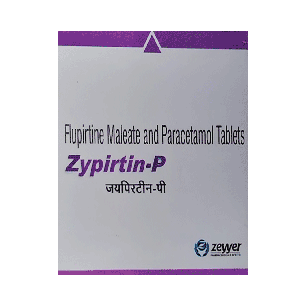 Zypirtin-P Tablet is a combination of two medicines: Flupirtine and Paracetamol, which relieves pain. Flupirtine is an analgesic (pain reliever) which works by blocking transmission of pain signals to the brain to lower pain perception. Paracetamol is an analgesic (pain reliever) and an anti-pyretic (fever reducer) which works by blocking the release of certain chemical messengers that cause fever and pain.