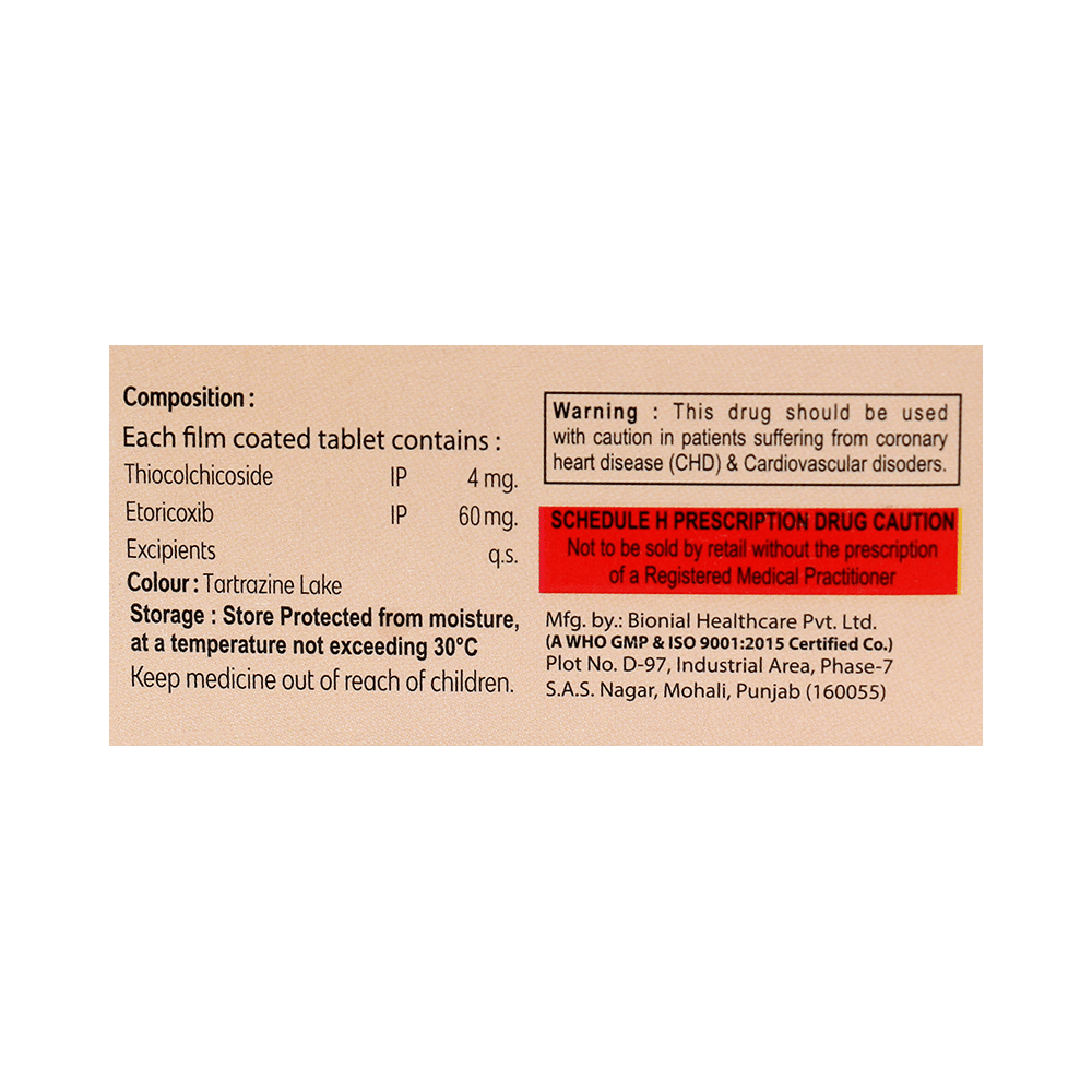 Salt Composition: Etoricoxib (60mg) + Thiocolchicoside (4mg)