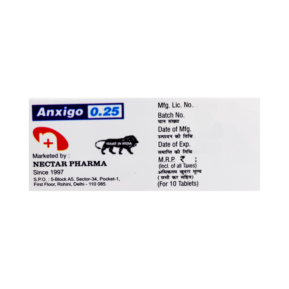 Anxigo 0.25mg Tablet