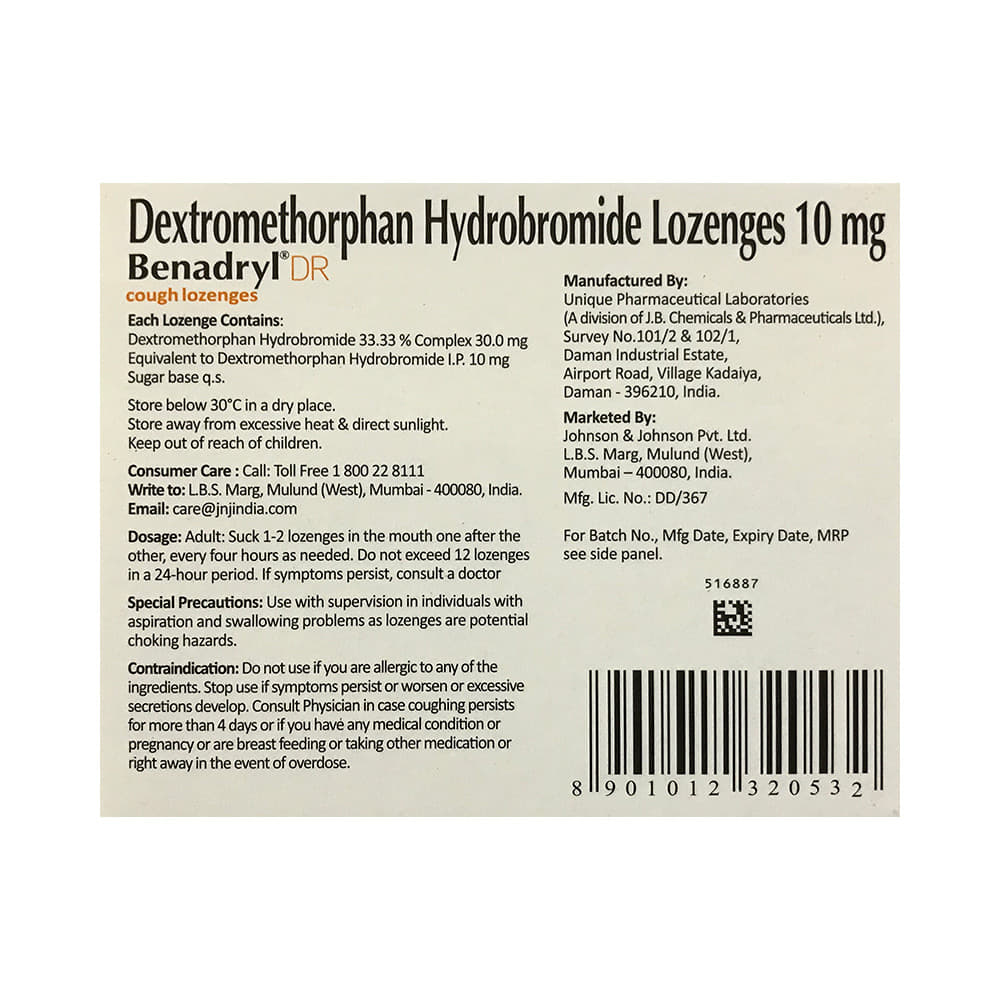 New Benadryl DR Cough Lozenges Honey+Lemon