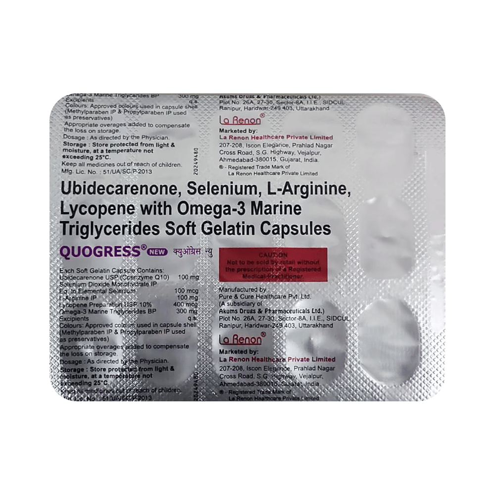 Quogress Soft Gelatin Capsule With CoQ10 Vitamin E & Omega-3 Fatty Aids